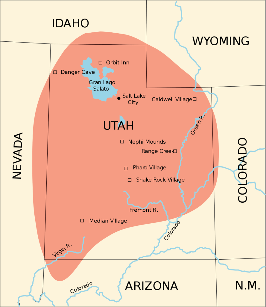 By 750 A.D., village life had developed in the heart of the Fremont region, with a number of farming villages consisting of semi-subterranean timber and mud pit-houses and above -ground granaries. The height of the Fremont culture was 700-1250 A.D. due to favorable climatic conditions. Between 1250-1500 A.D., the Fremont culture vanished. More aggressive Ute, Paiute and Shoshoni peoples have migrated into the region around this time, and may have absorbed/displaced the Fremont into their culture (pictured below).