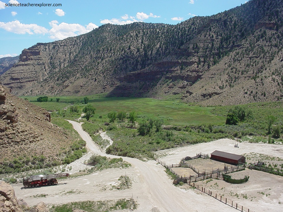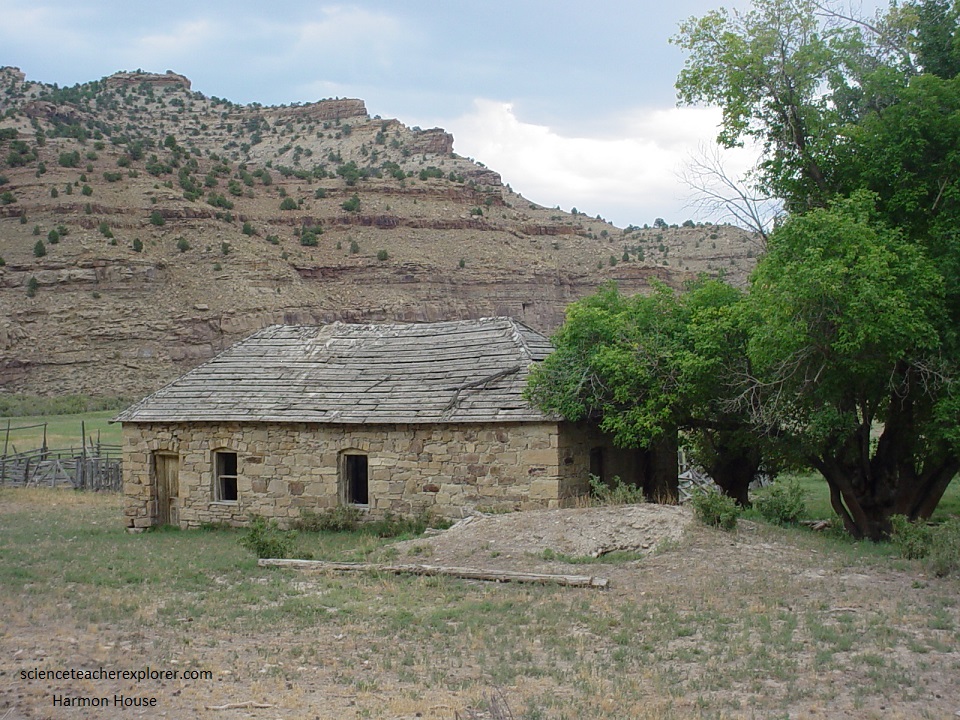 Pictured below, at 2.1 Km east of the Argyle Road Junction, is the historic house, (on the southside of the road), called the Harmon House after it’s builder Ed Harmon. It was a major stage stop and telegraph relay station in 9-Mile Canyon in the late 1800s. A twice-weekly stage route was established in 1888, and by the following year it had become a daily service.