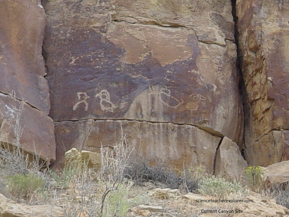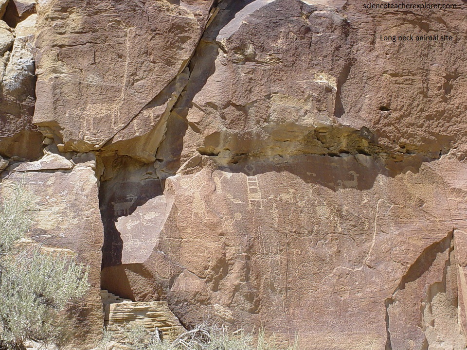 Pictured below, and almost out of the end of 9-Mile Canyon is the long-necked ram petroglyph. It is strange and I’ve seen this depiction at a couple of sites within the 9-Mile collection. I would almost call it the “Giraffe Site”. But Giraffes are only found in Africa. “Strange!!”