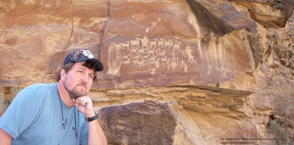 Some of the most spectacular rock art in Utah is to be found in 9-Mile Canyon northeast of Price. Don’t let the name deceive you, the canyon is actually 60 km long. Called “the world’s longest art gallery”, it is home to numerous rock art panels. Because of this, I led an adult-tour from the University of Utah Natural History Museum in 2007.