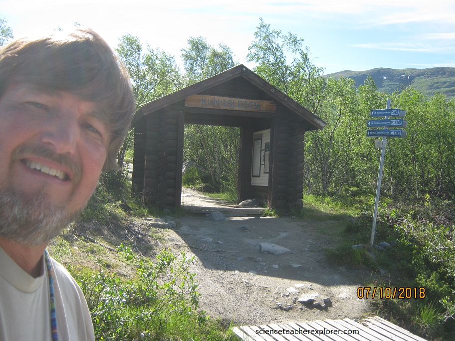 On June 30th, 2018, I took a train from Narvik, Norway to Abisko, Sweden. There, I begin a 5-day hiking trek on the King’s Trail or “Kungsleden” in Sweden. Pictured below (upon my return) is the trailhead for the Kungsleden and the entrance to Lappland.