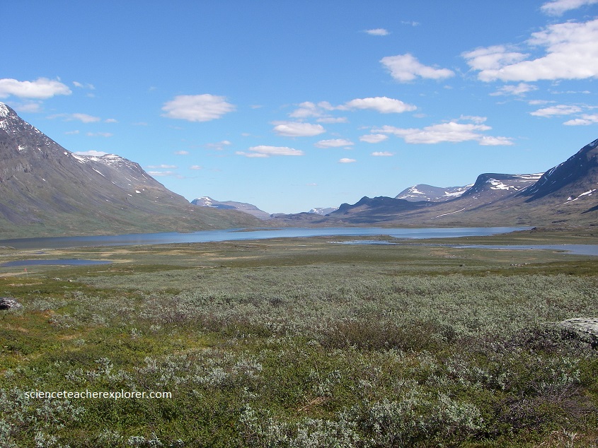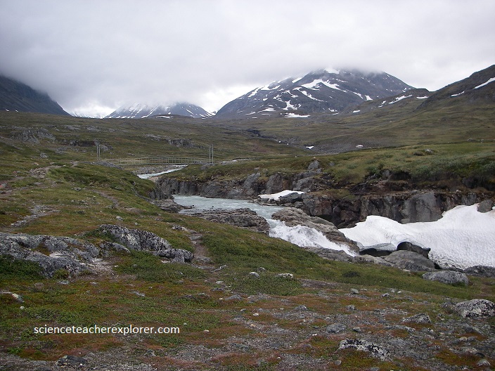 You can see that the weather turned to snow on me before I got to my destination at the Tjaktia High Point (pictured above). Note, that I was north of the Arctic Circle and the weather changed daily with the 24 hours of light in July. I turned back after the 50 km mark. Below is an image I took upon my return to Abisko, Sweden.