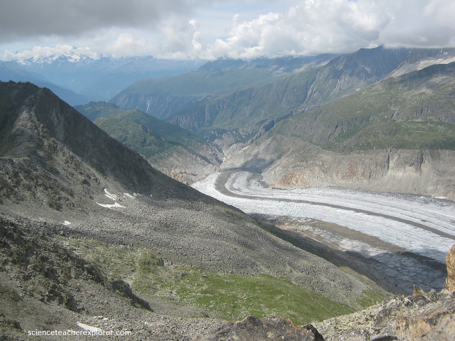 On July 17th, 2017; I had the opportunity to hike up onto a ridge and get a excellent view of the Grosser Aletsch Glacier in Switzerland. I approached the area, by riding a cable-car and hiking above Feisch, Switzerland.