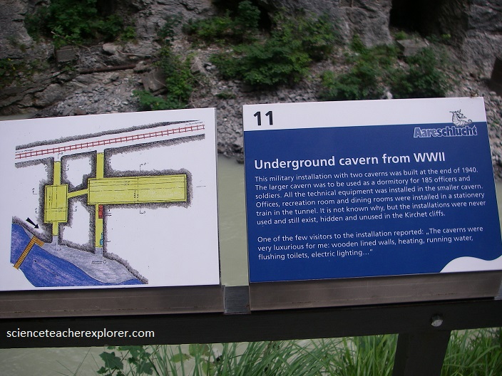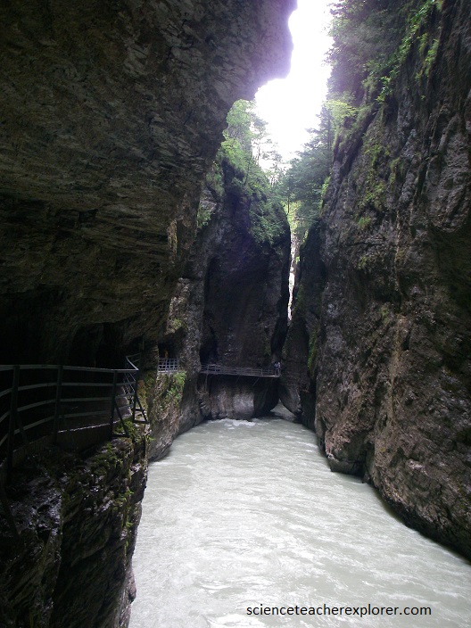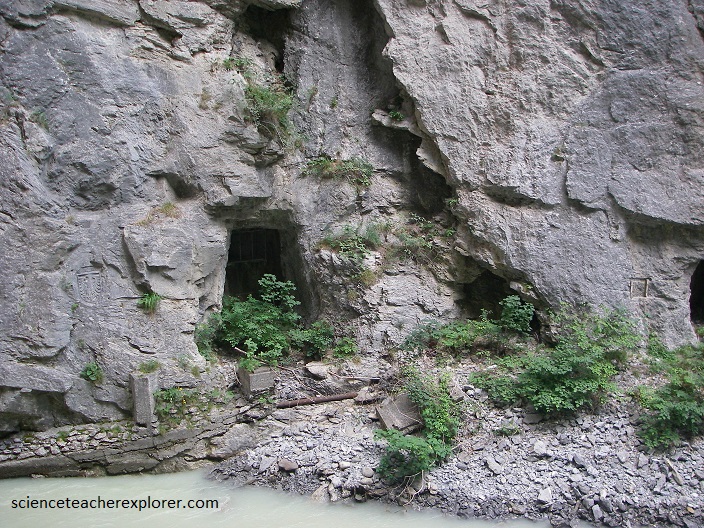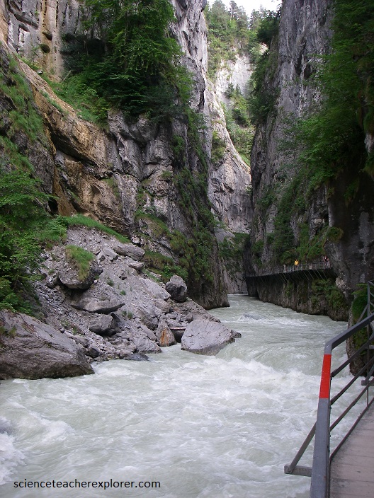 On my drive to the Grindelwald, the Jungfrau-Aletsch-Bietschorn region, location in the south-central Swiss Alps, is a stunningly beautiful region. A rich coalition of geological and glacial processes have combined to produce this extraordinary landscape. The complex rock formations here, are the result of over-thrusting and folding rock layers between 20-40 million years ago, and have subsequently been exposed by the action of large glaciers. The region covers 133,400 acres and boast heights ranging between 3000 ft. and 14,000 ft. Picture above and below is brief exploration of Aare Gorge near the highway.