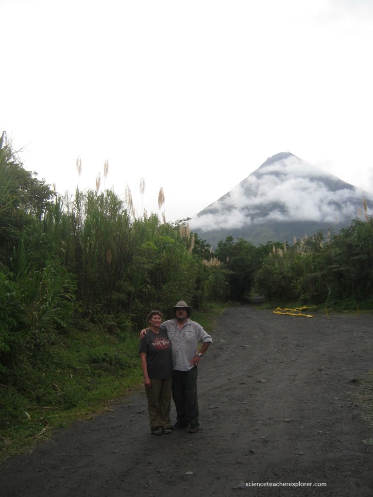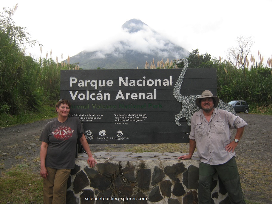The youngest of the country’s none active volcanoes, it was dormant from 1500 until 1968 when Arenal Mountain became know as a volcano. Completely burying three small villages, the volcano ruined more than 15 square miles of crops, forest, and property. (Pictured below), Becky and I are standing at the entrance of Arenal Volcano National Park.