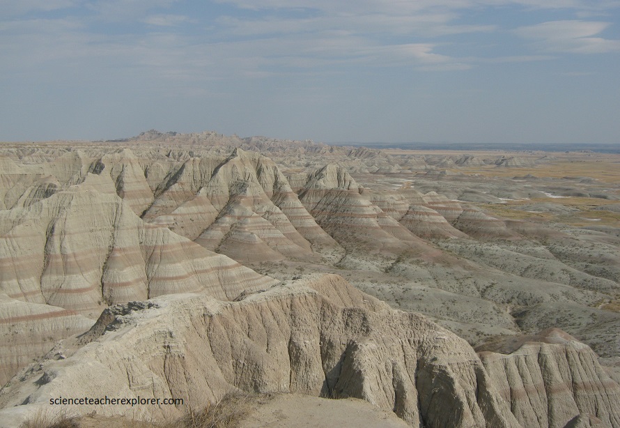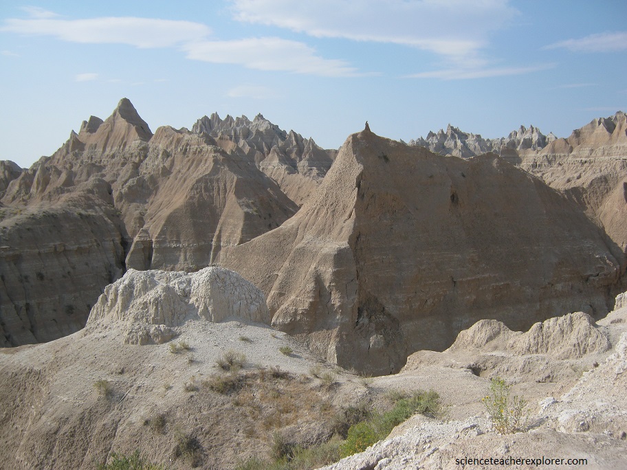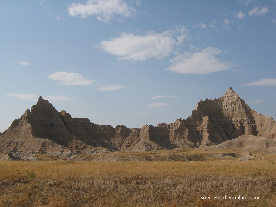 The Badlands’ sediments were deposited in layers beginning 75 million years ago when shifting continents raised the Black hills to the west. Sand, silt, and clay measuring thousands of feet deep were then deposited on the plains, along with several layers of volcanic ash, until five million years ago, when the White River began eroding to gradually reveal the stark landscape we see today.