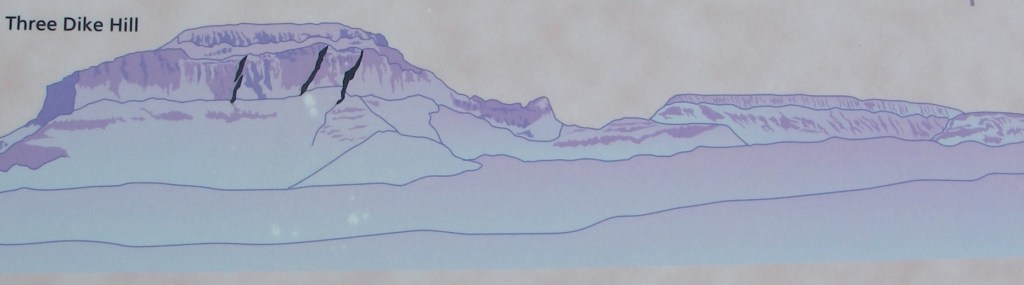 Farther on are Mule Ear Peaks (pictured below) formed by dikes that erosion has sculptured into the shape of a mule’s ears.