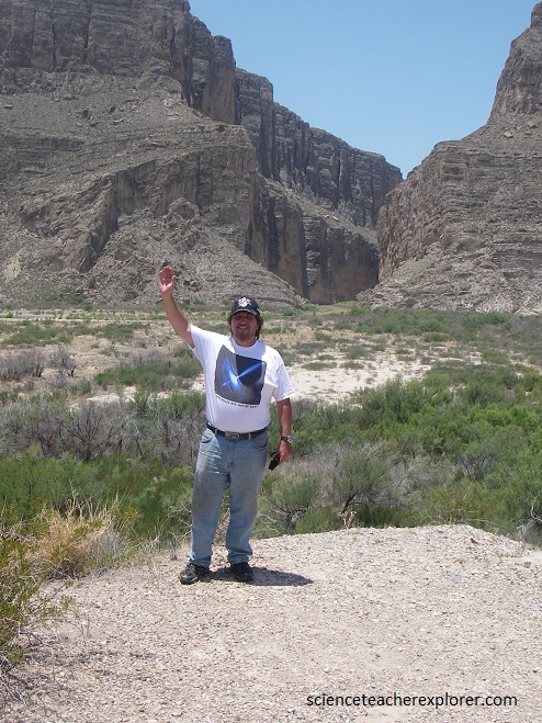 The view of Santa Elena Canyon (at the end of Maxwell Scenic Drive) is one of the most spectacular in the Park (pictured above). The Rio Grande, like a giant rasp, has cut through the massive Lower Cretaceous limestone layers in the mesa making a gorge, which in some places is not more than 10 m wide but which has sheer walls approximately 500 m high. The middle of the Rio Grande at the bottom of the canyon is the International Boundary between Mexico and the United States; Sierra Ponce (Mexico), on the left, Mesa de Anguila (United States), on the right. Santa Elena Canyon is a prominent physical barrier between the United States and Mexico. The canyon is cut across an uplifted block of Lower Cretaceous limestone.