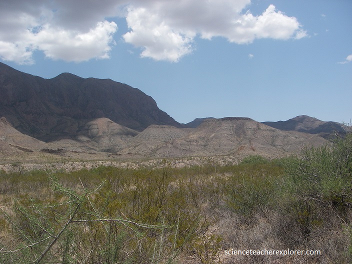 The Basin of the Chisos Mountains is part of a great rift valley that stretches from Colorado to Mexico. The basin and its mountains sit in a sunken block in the rift, surrounded on either side by more mountains.
