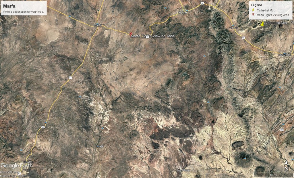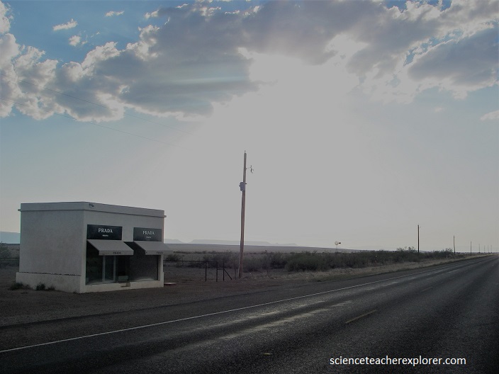Passing through Marfa, Texas on US-90 was an opportunity to visit the world-famous home of the mysterious “Marfa ghost lights”, (imaged below). The Marfa Mystery Lights are visible on many clear nights, (I was not there on one of these), between Marfa and Paisano Pass on US-67 as one looks towards the Chinati Mtns. The lights may appear in various colors as they move about, split apart, melt together, disappear and reappear.