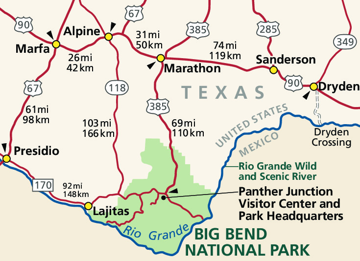 Big Bend National Park encompasses the largest protected area of the Chihuahuan Desert in the United States. The 800,000-acre national park contains three basic habitats: river, desert, and mountains. The Rio Grande Wild and Scenic River forms its southern boundary, and it’s the only park in the United States that contains a complete mountain range – the Chisos.
