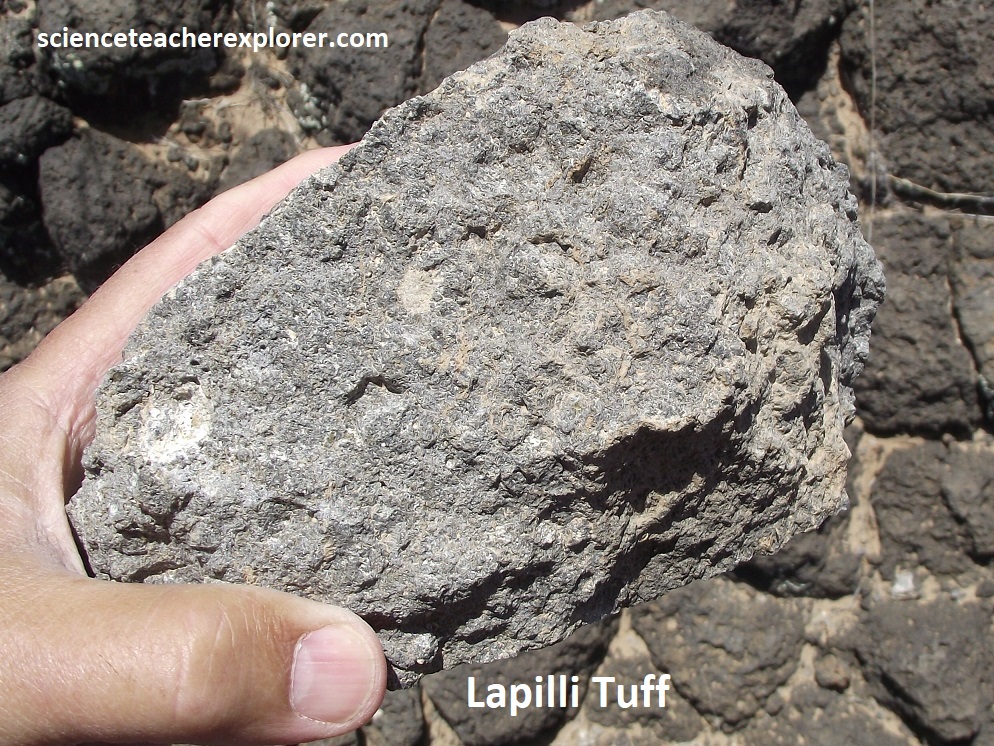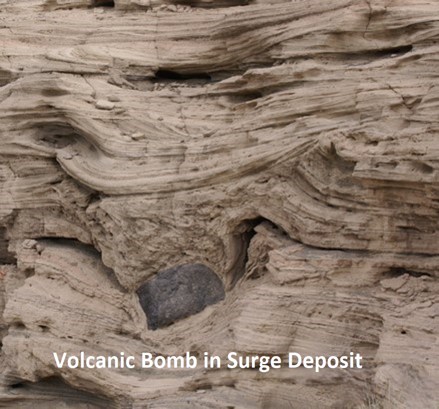 A base surge contains Lapilli tuff that forms as fine-grained ash paricles stick together around condensing water droplets or solid particles.