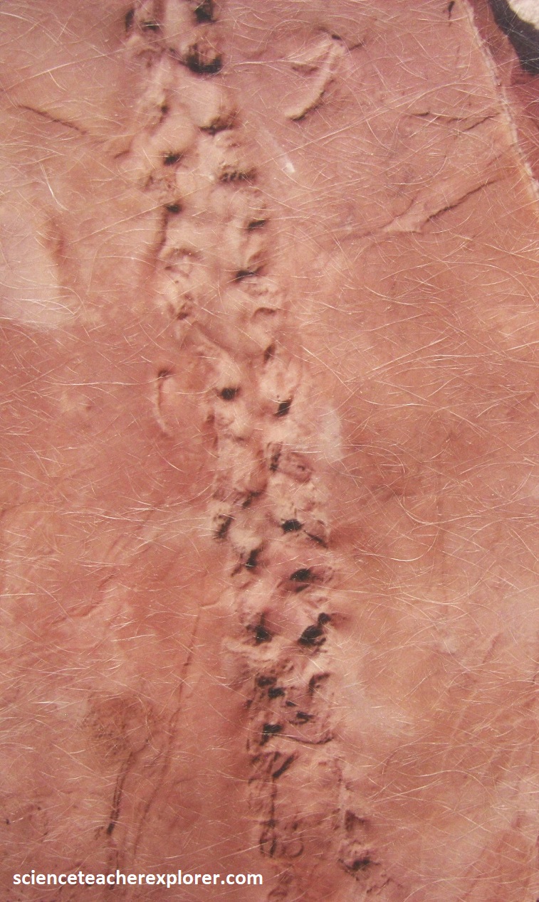 These fossilized tracks, animals & plants give scientists an idea of how the animals walked, where they lived and hunted, and how they interacted with each other and the environment. The fossils make a connection to life forms that have been extinct for over a quarter of a billion years. Below are the fossils I found along my trek into the Prehistoric Trackways National Monument.