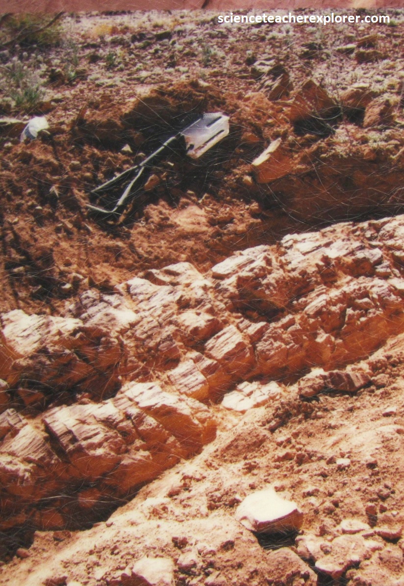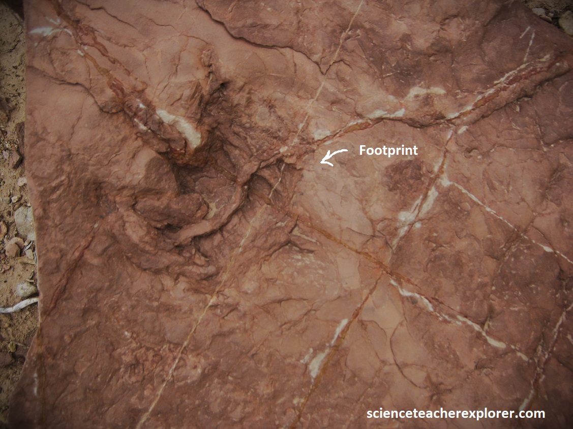 I trekked to the discovery site and found a number fossilized rocks, (pictured below). The trackways are found mostly on ancient red mudstone. The tracks make up a megatrackway (stretching over 26 km) within and around the Monument. In certain areas, the tracks are exposed, but much of the fossil bearing layers are still buried within the mountains. Below are the photos I took along the way: