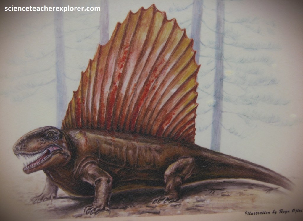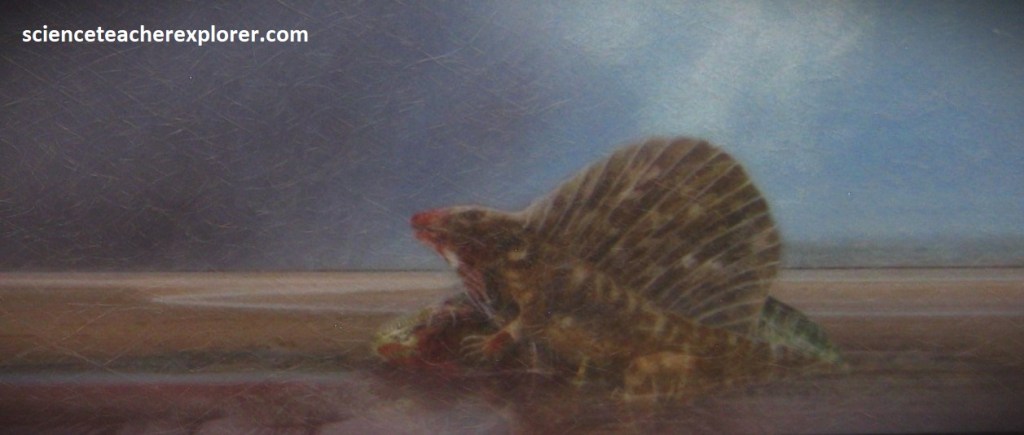 The Edaphasaurous was a plant eating cousin of the Dimetrodon, enjoying the tropical environment that used to be here 280 million years ago. It was eating a plant called Supaia also found in the fossil record of the Monument.