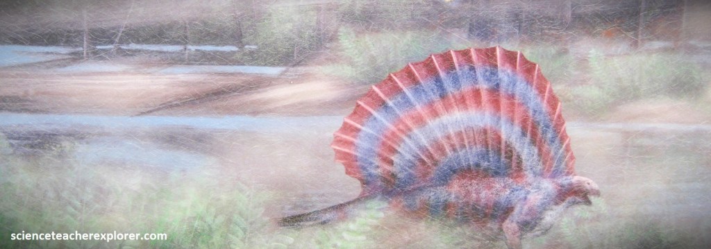 Here is a scene of a Dimetrodon eating it’s prey. The mud flats surrounding them are what make for a perfect environment to capture the tracks of these prehistoric animals.