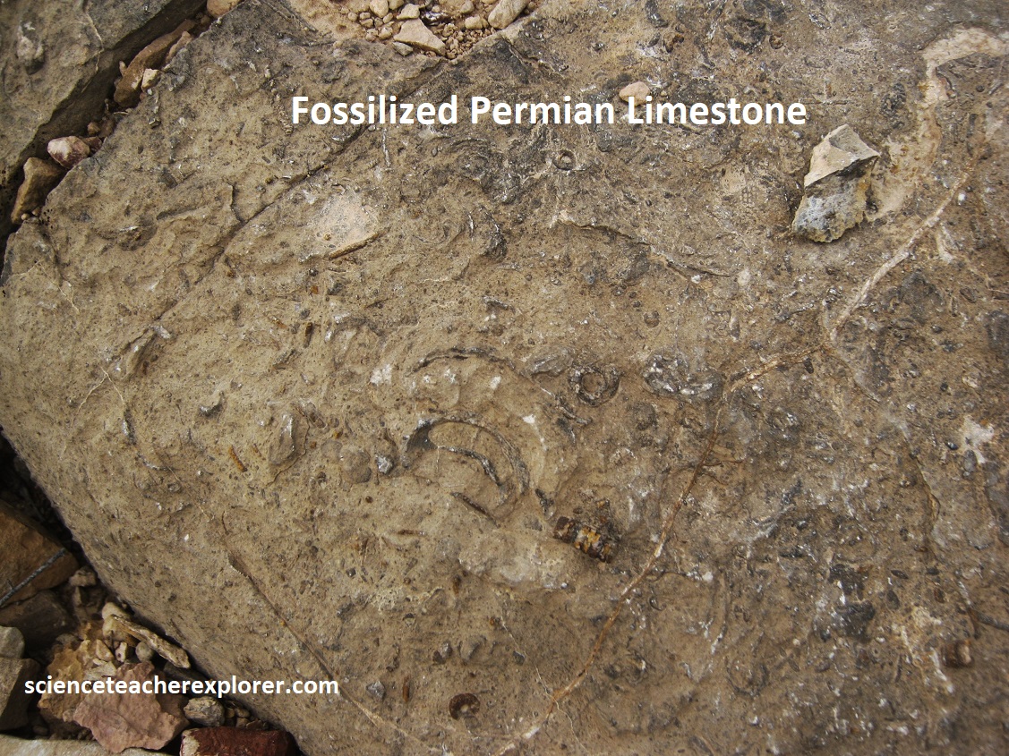 These rocks, the Hueco Group, were deposited in rivers, floodplains, tidal flats, and the warm shallow sea at the edge of the giant Pangea continent near the equator, (imaged below).