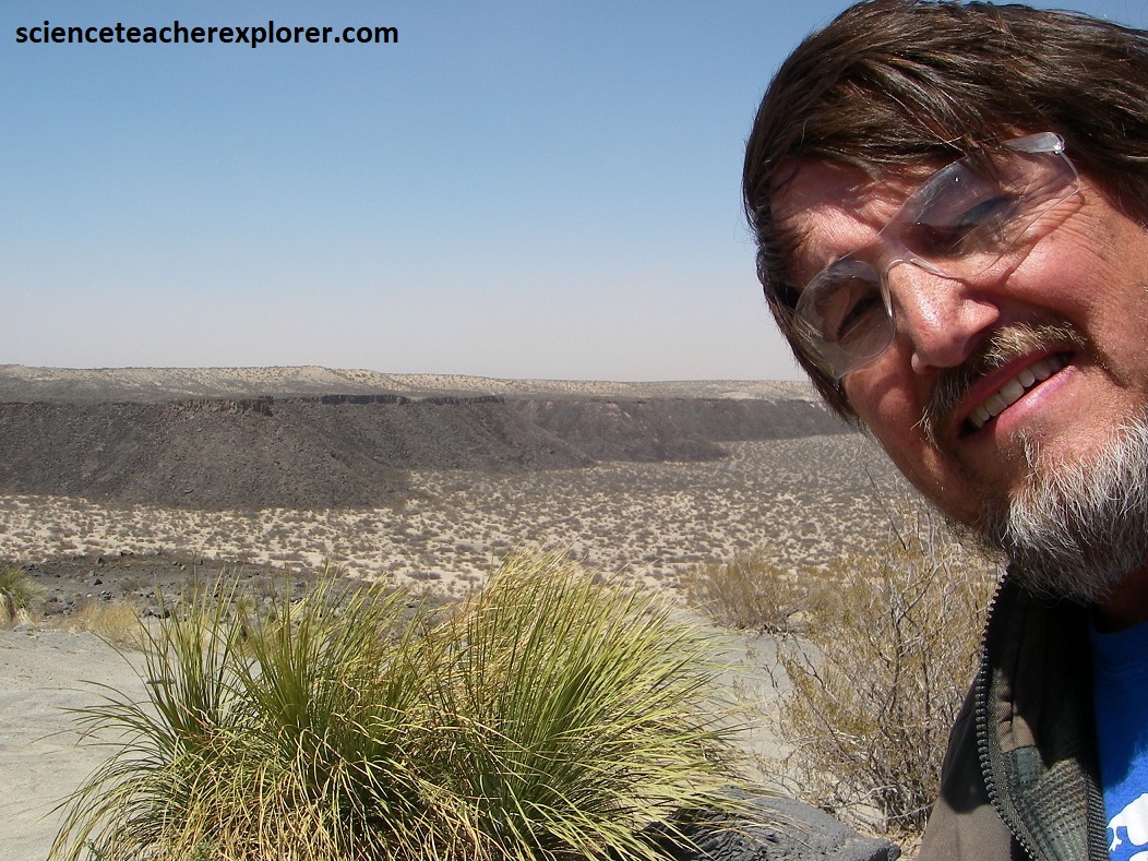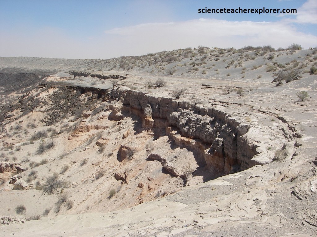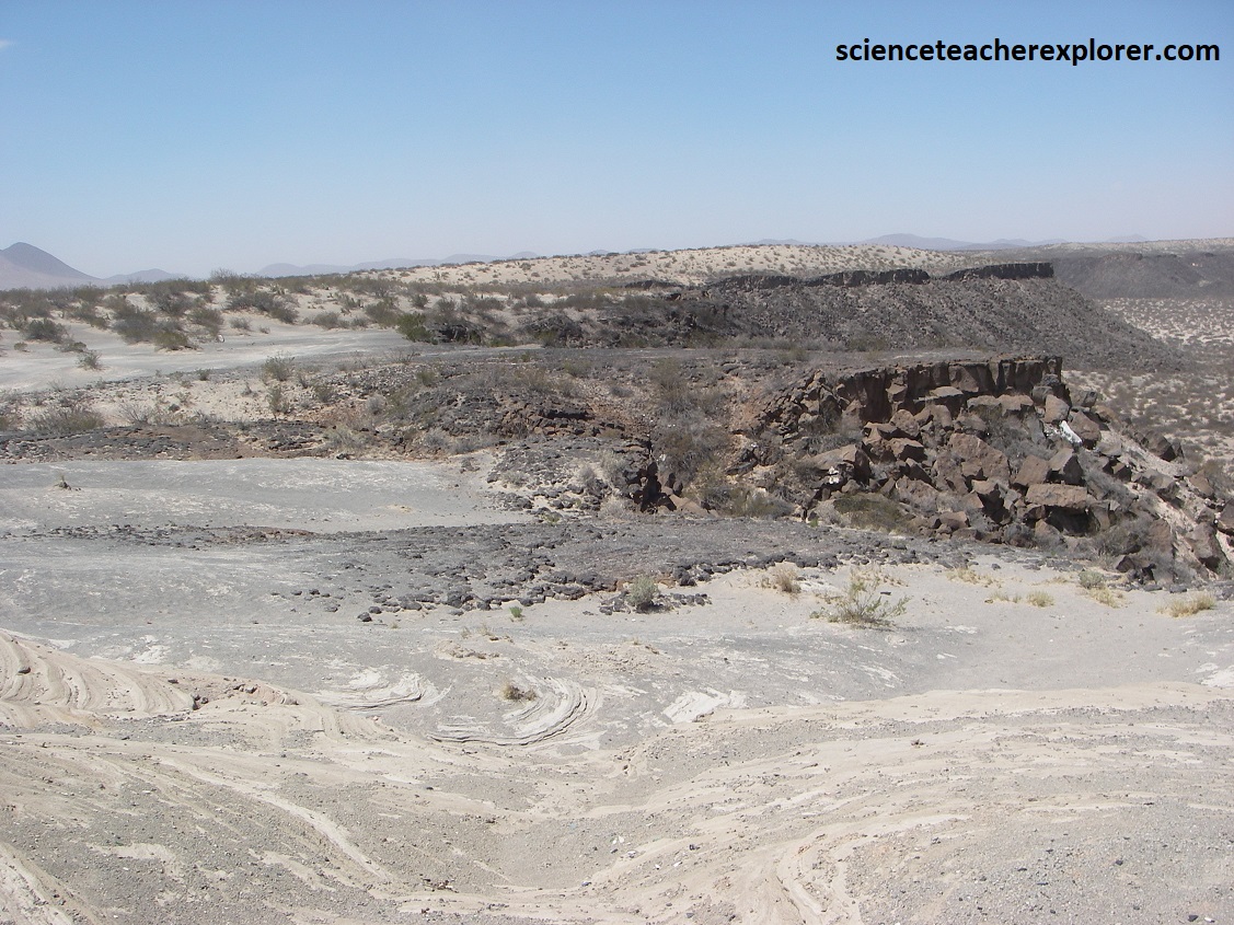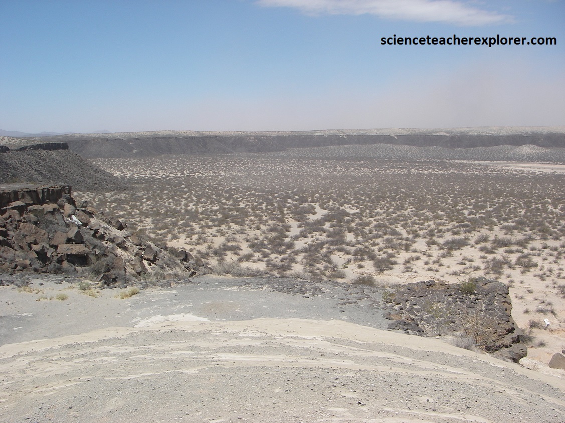 Pictured above, the Kilbourn Hole is a large maar volcano the erupted through a flat basalt plain. Note the black cap of the young Afton Basalt around the crater rim.