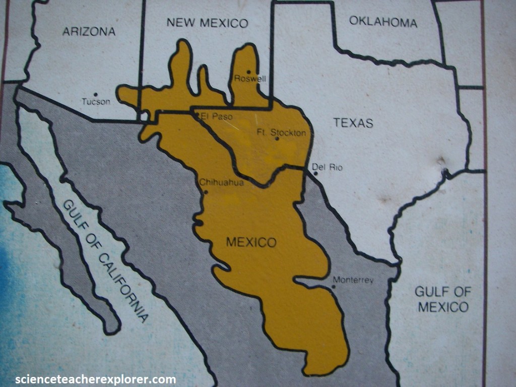 The Chihuahua Desert’s 520,000 square kilometers consists of mostly flat plains that are occasionally broken by gullies, hills, and stark mountain ranges. Imaged below, from deep in Mexico, the great, arid arc of the Chihuahuan Desert spills into Texas, (generally west of the Pecos River), and into parts of New Mexico and Arizona. Its geological story is vividly revealed in exposed rock strata, erosive remnants, arroyos, and canyons.