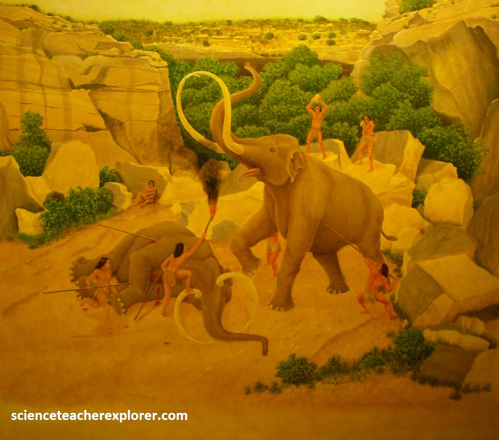 Just east of the Pecos Bridge on US-90 is Seminole Canyon State Park, (Archeological Site). Cave art and archeological artifacts at the Seminole Canyon State Park, date back to the earliest human habitation in the area. It is estimated that human habitation of the area began 10,000 years ago, during the Holocene era when mammoth animals would have also inhabited the area. Vegetation is believed to have been a denser and richer variety to support the life of the area. The erosion from floods and rains that happened over the ages chipped away at the Devils River Limestone, can be seen in some of the area rock walls. Where there was especially soft rock or lots of erosion, overhangs formed. Seeking shelter from sun and rain, indigenous peoples moved into the shelters and began to leave cave art evidence of their presence some 2,000–8,000 years ago. The designs they painted and the objects they left behind tell stories of their lives.