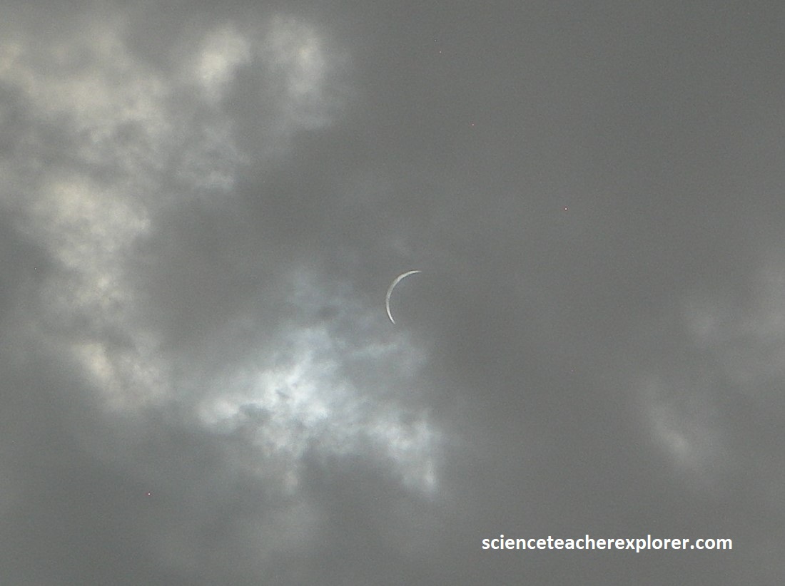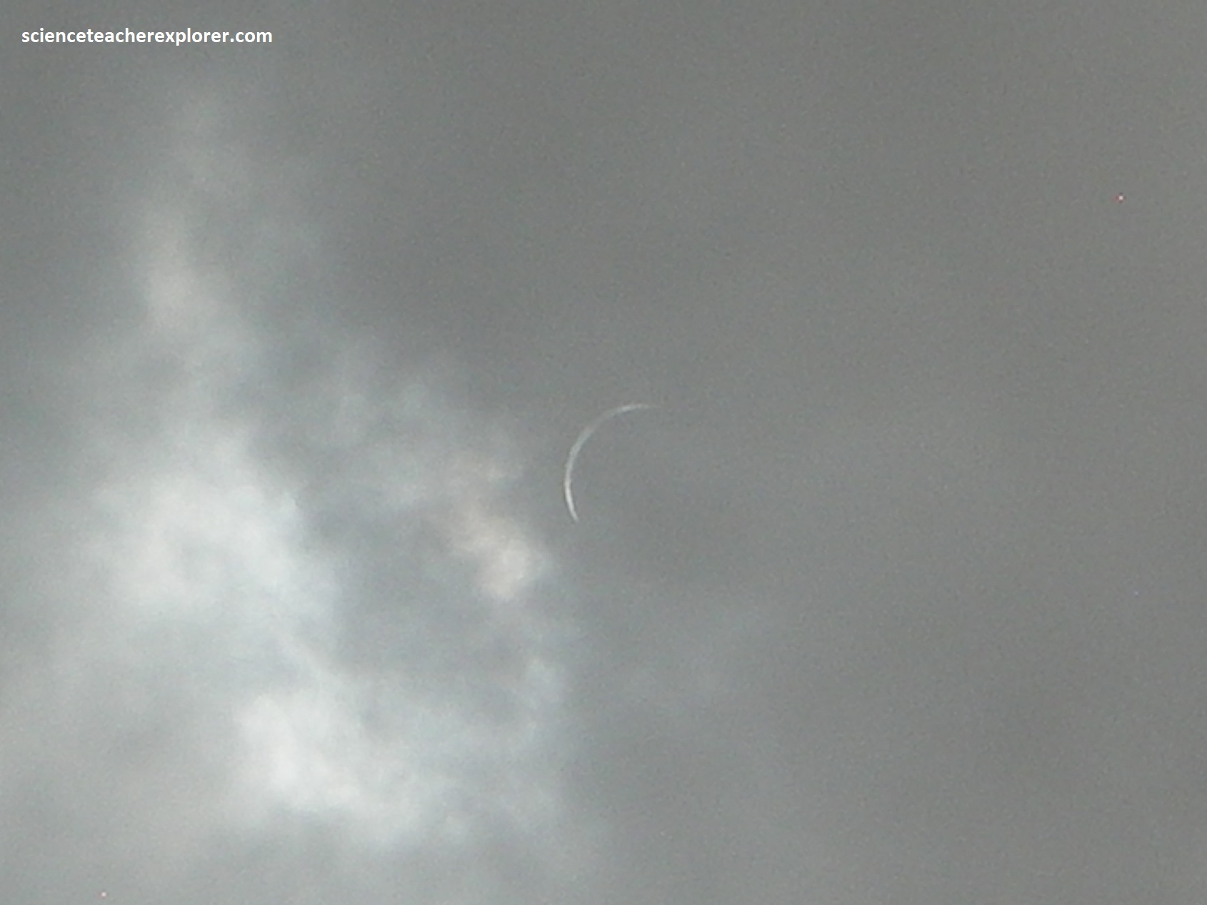 Unfortunately, we missed the totality of the eclipse due to the clouds. Below is what I captured: