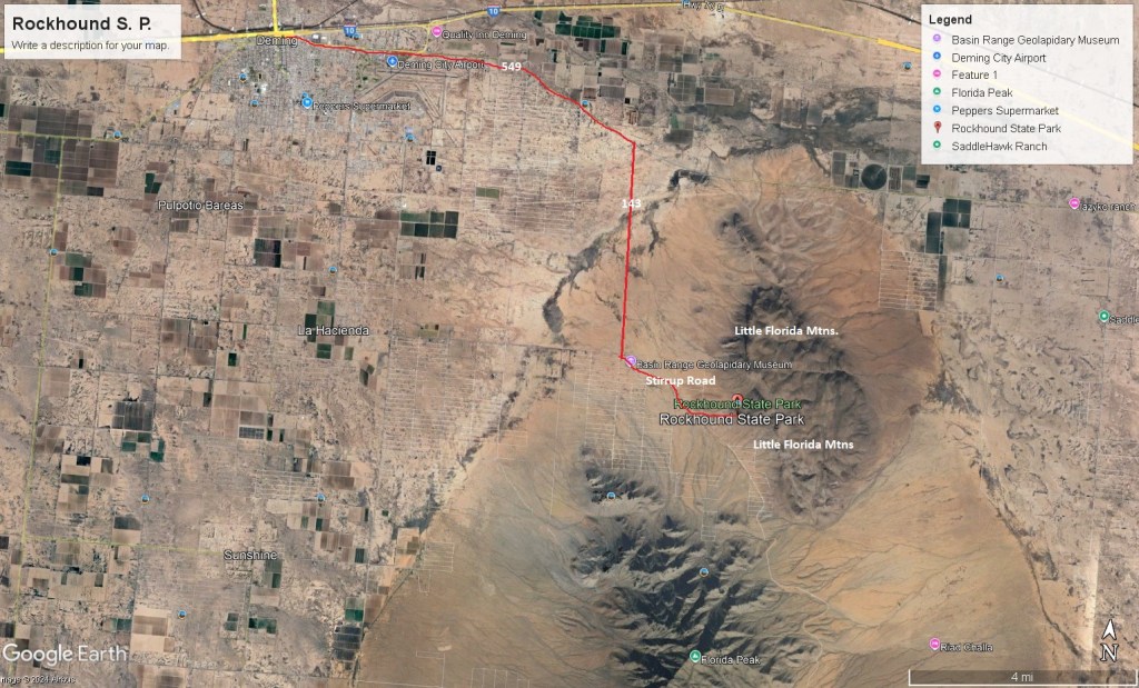 My fist geo-destination was Rockhound State Park. To get there, I took state-road NM-549 east from Deming. Then I turned right, (south), on NM-143 and continued to junction NM-141/143 where I turned left onto Stirrup Road, (southeast) to the entrance of the park.
