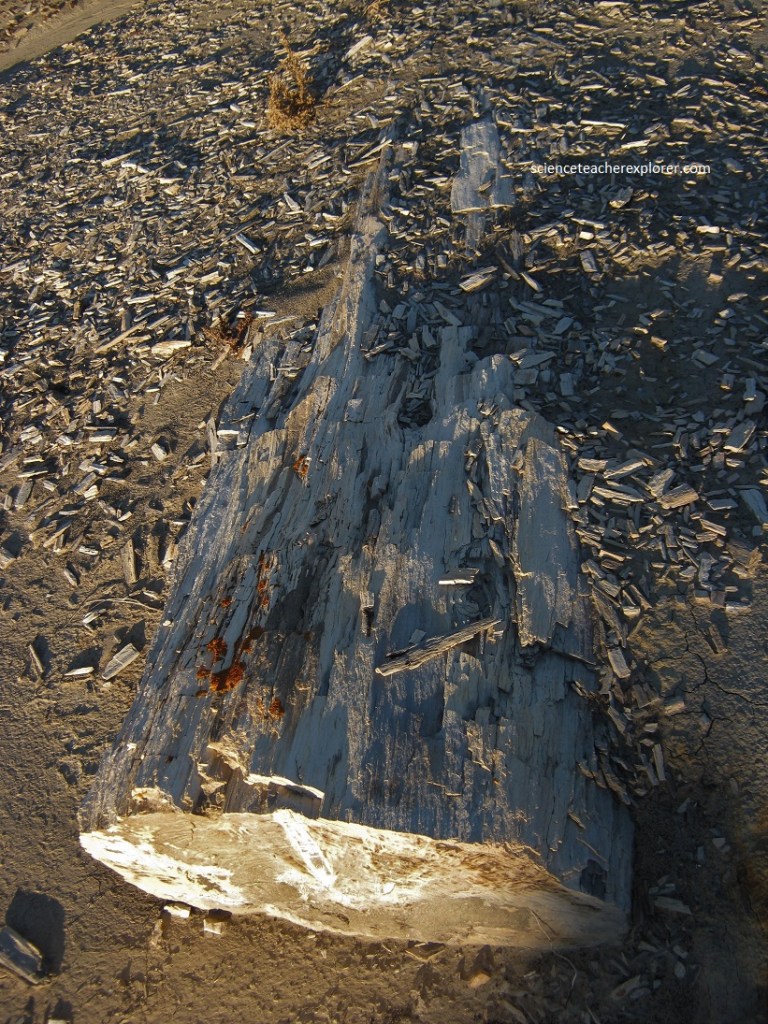 Lignite mounds coincide with most of the petrified wood and fossils found in the Wilderness. Generally, the organic remains are harder than lignite, so they weather out as the lignite erodes. The fossils in the wilderness preserve a record of freshwater life in and on the edge of the great delta at that time.