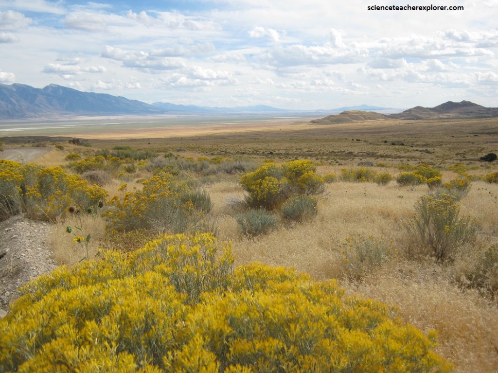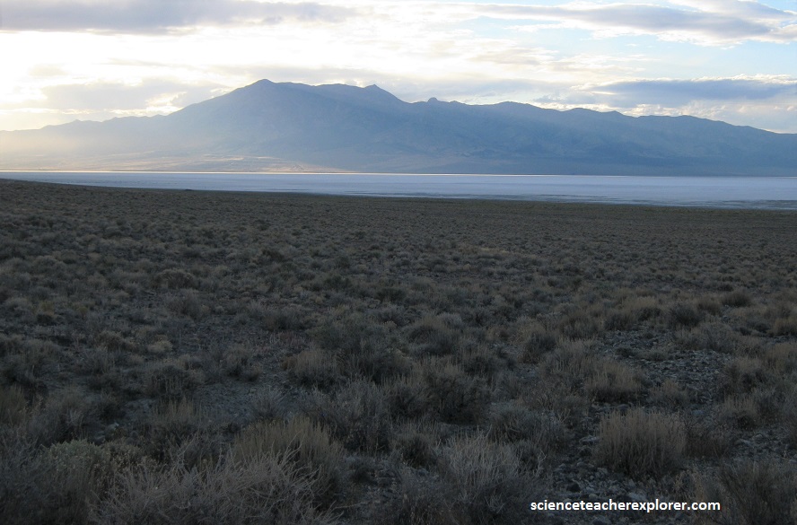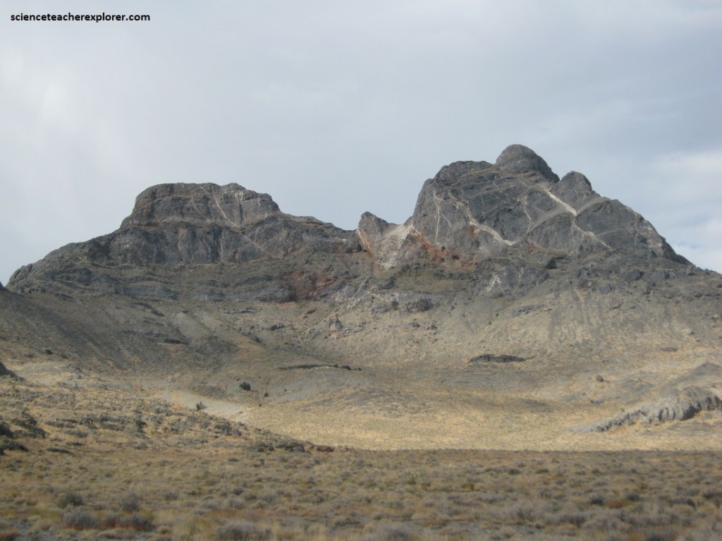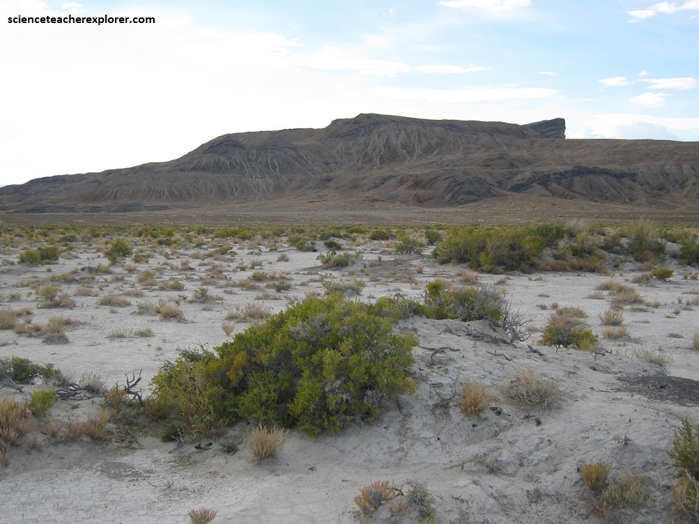 Pictured above, the bedrock in the Silver Island Range includes faulted and folded fossil-bearing limestones of the Cambrian age. The slopes of the range have been terraced by shoreline erosion and deposition from Lake Bonneville.