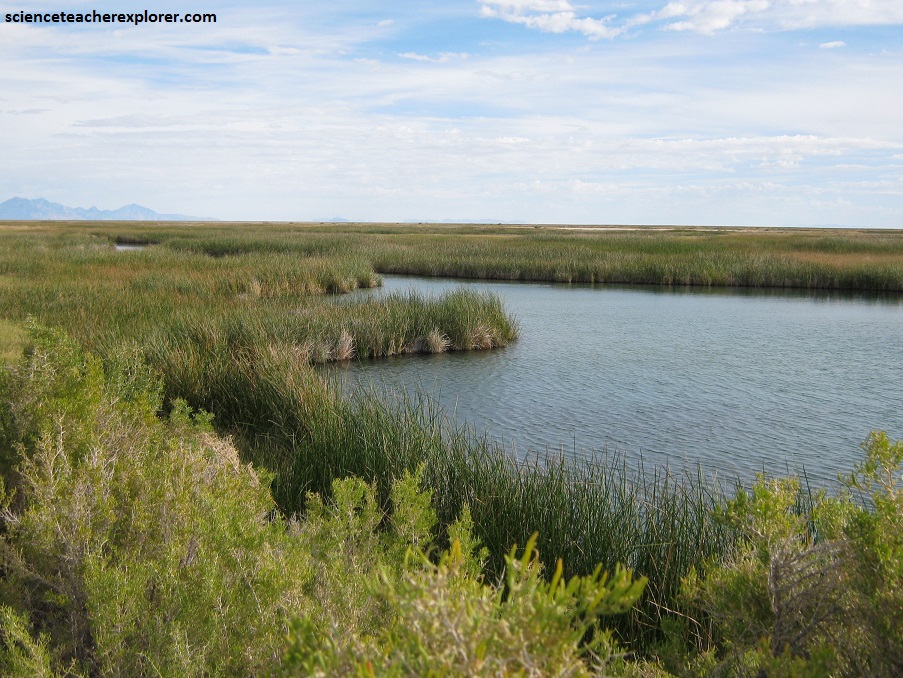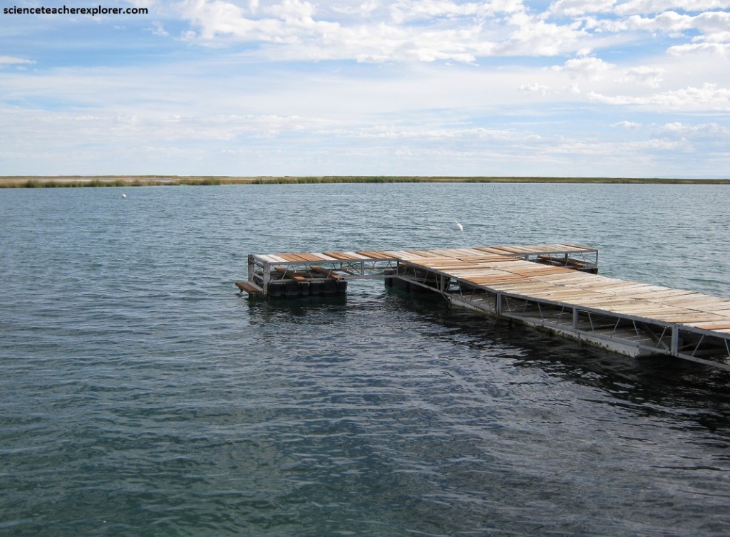 Pictured above, nearby “Blue Lake” is a large geothermal pond located about 26 km south of Wendover, Utah within the Bonneville Salt Flat area. The lake is 18 m deep, approximately 9 acres (3.6 ha) in size and at an elevation of 1,300 m above sea level.