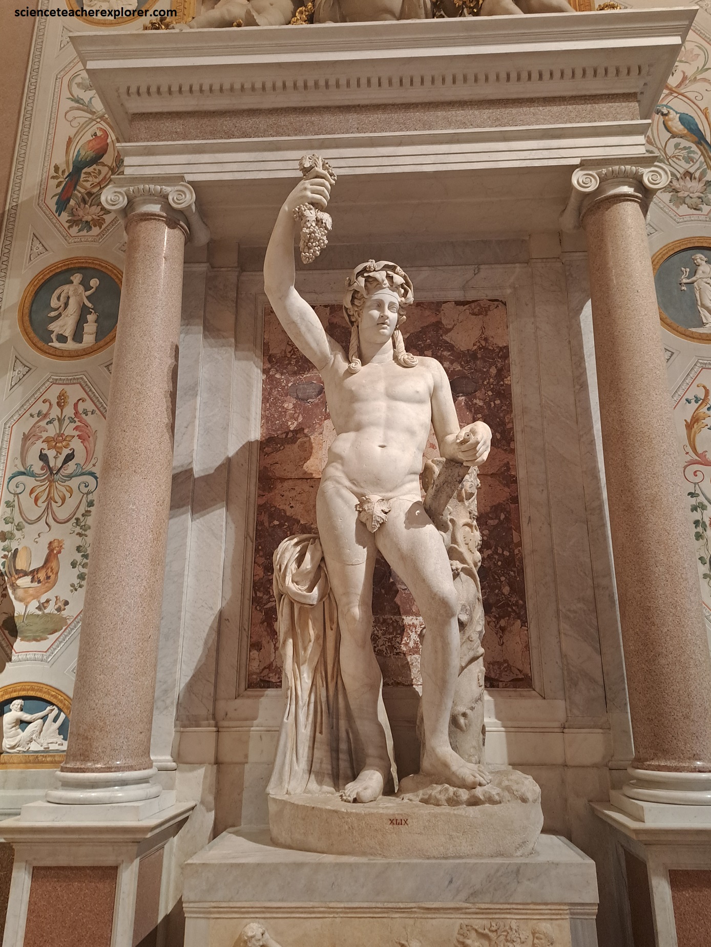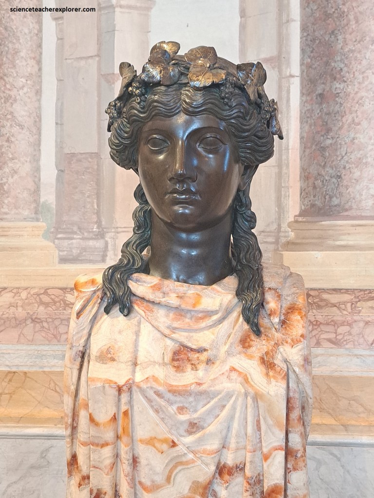 Pictured above, opposite the statue ‘Venus Victrix’ stands an extraordinary work by the sculptor Luigi Valadier, the ‘Herm of Bacchus (1773). This refined bronze head has been patinated in green copper tones by the artist and crowned with a wreath of gilded ivy leaves. Becky and I, then moved to Room #2.