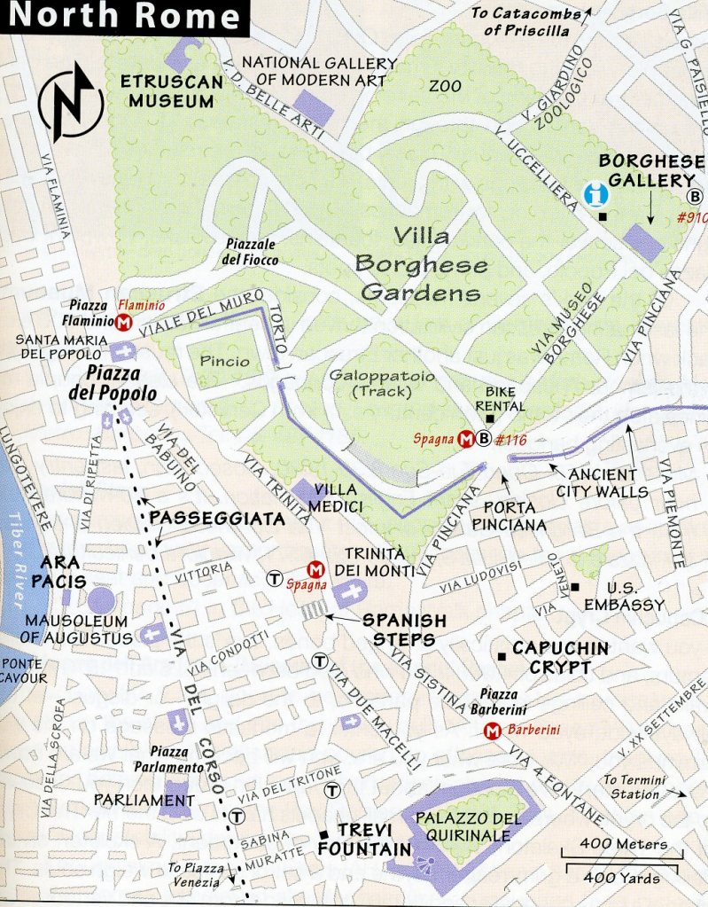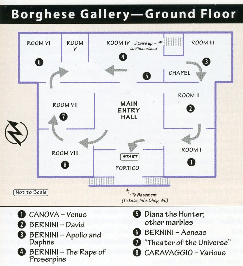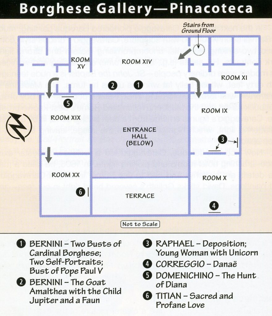 Imaged above, the Borghese Gallery is located in the northern portion of Rome, within the lush and sprawling Villa Borghese Gardens.