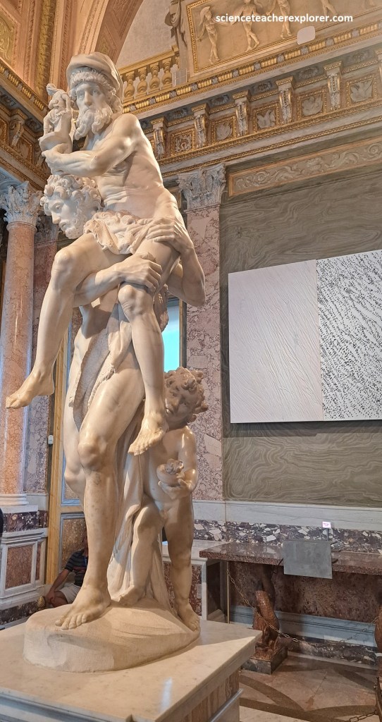 According to Virgil’s epic poem “The Aeneid”, Rome was founded by the Trojan prince Aeneas who fled the fallen Troy with his father Anchises and son Ascanius. Pictured above, this sculpture is a depiction of that event and at the same time an allegory of the three ages of man. Looking closely, I could actually see baby fat on the boy, muscular sinew on Aeneas and wrinkled skin on Anchises. Anchises never made it to Latium, dying on the way.