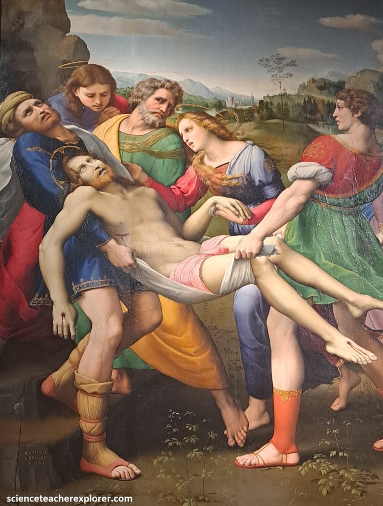 The next room we explored was Room #9. Here, Becky and I found two major Raphael paintings. Raffaello Sanzio da Urbino (1483-1520), known as Raphael, was an Italian painter and architect of the Renaissance. His artworks are famous for the clarity of form, ease of composition, and visual accomplishment of the Neoplatonic perfection of human body. Pictured above, is ‘The Deposition’ by Raphael in 1507. Raphael’s ‘Deposition’ is considered one of the artist’s earliest masterpieces. It depicts the moment in which the body of Christ is being moved to the sepulcher and the three men carrying it are arched due to their effort. All around, women are in agony and despair. Saint John is the figure with folded hands looking at the body of Christ.