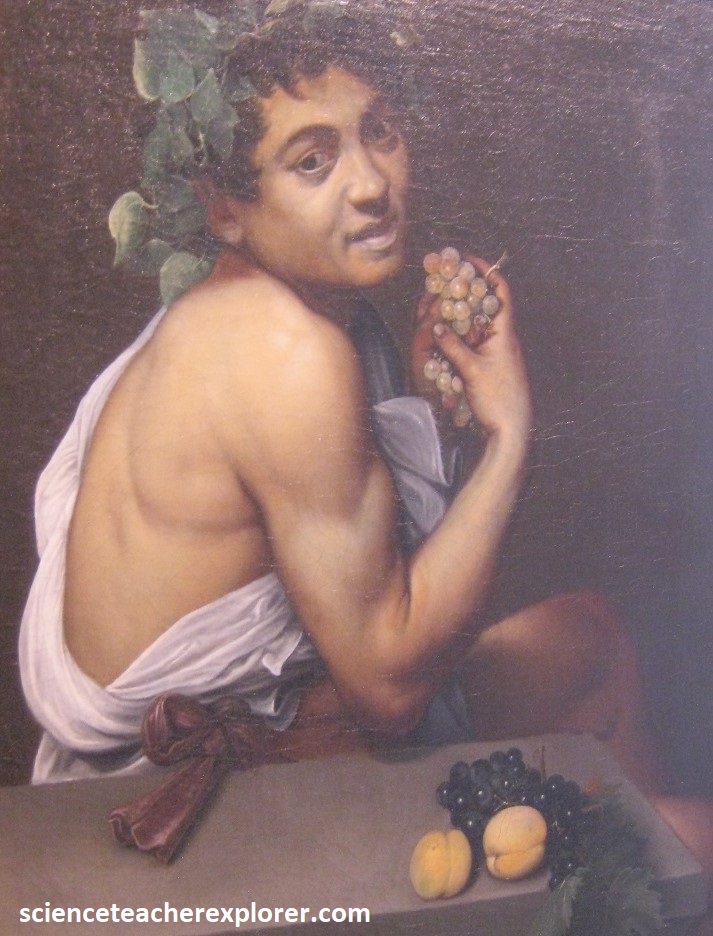Pictured above on the left, this self-portrait as ‘Bacchus’ shows 20-something Caravaggo as he first arrived in Rome in the early-1590s, a poor bohemian enjoying the wild life. The painting called ‘Young Sick Bacchus’, probably indicates that Caravaggio’s physical ailment involved malaria, as the appearance of his skin and icterus in the eyes are key factors of active hepatic disease leading to high bilirubin levels. Pictured above on the right, is also a self-portrait painting called the ‘Boy With a Fruit Basket’. It dates from when Caravaggo made a living painting minor figures in other artists paintings. His specialty was painting realistic fruit.