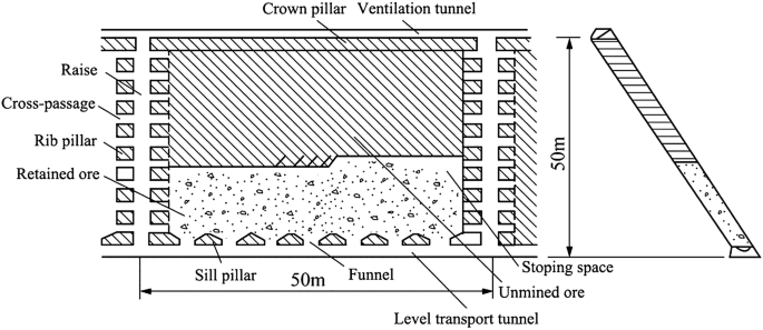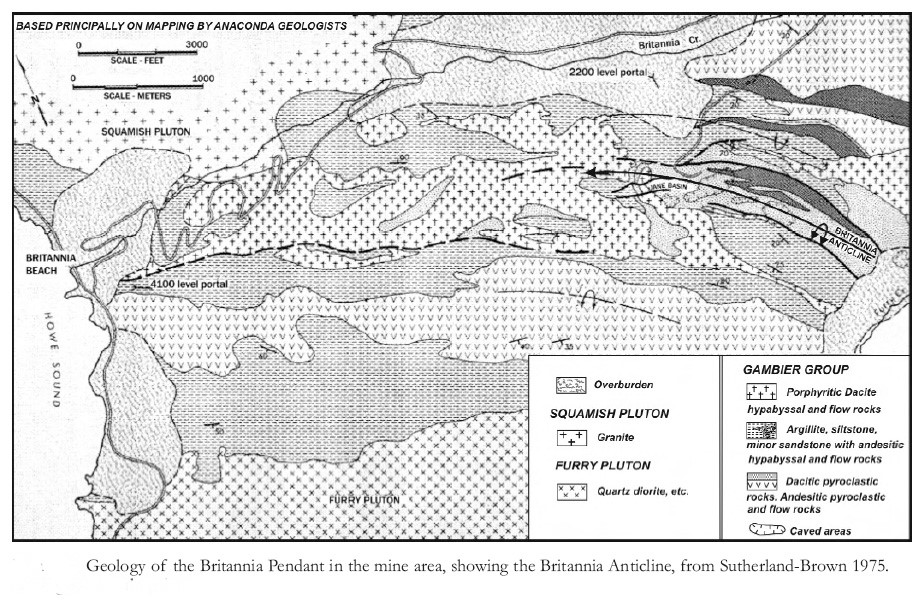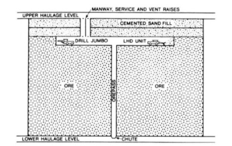 Imaged above, the Britannia Mine (1903–1974) employed underground mining methods to extract the ore, (primarily using drift-and-fill and shrinkage stoping to extract copper, zinc, and gold). The mine operated several separate orebodies, (including Jane, Bluff, Fairview, and Victoria), using underground, multi-level methods, primarily extracting massive and stringer ores. {Imaged below are longitudinal section of an undercut-and-fill and shrinkage stoping techniques; (images taken from “Society for Mining, Metallurgy & Exploration” at Littleton, Colorado 1992)}.