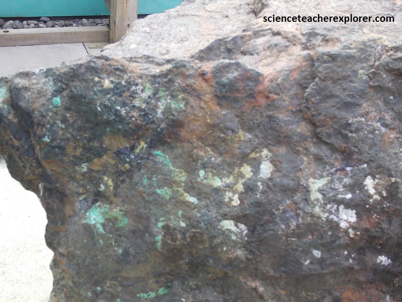The orebodies that were mined occurred within a narrow northwest-southeast-trending zone of intensely sheared, foliated, early Cretaceous pyroclastic rocks, angular fragments exploded from a volcano. The rocks are now greenschists, having undergone low-grade metamorphism, and can be seen, along with equipment used in the mine, in the car park just south of the museum.