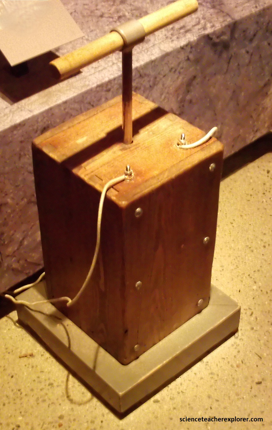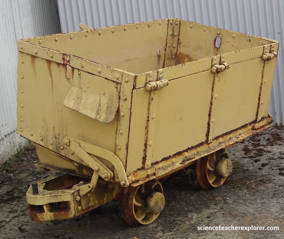 Explosives were fundamental to the operation of the Mine. Once detonated, it broke rock free from the rock face into movable pieces. Due to the inherent danger of explosives, special care had to be taken in their movement and storage. Pictured above on the left, this car was purchased in 1962 for transporting explosives into the Mine from the main explosives magazine, located above ground. No nails were used in the construction of this car, preventing any risk of the explosive powder bags being torn and leaking throughout the Mine. Picture above on the right, blasting boxes were used to detonate explosives before electricity was brought into the mine. Pushing the plunger would send an electric current through wires to the explosives setting them off.