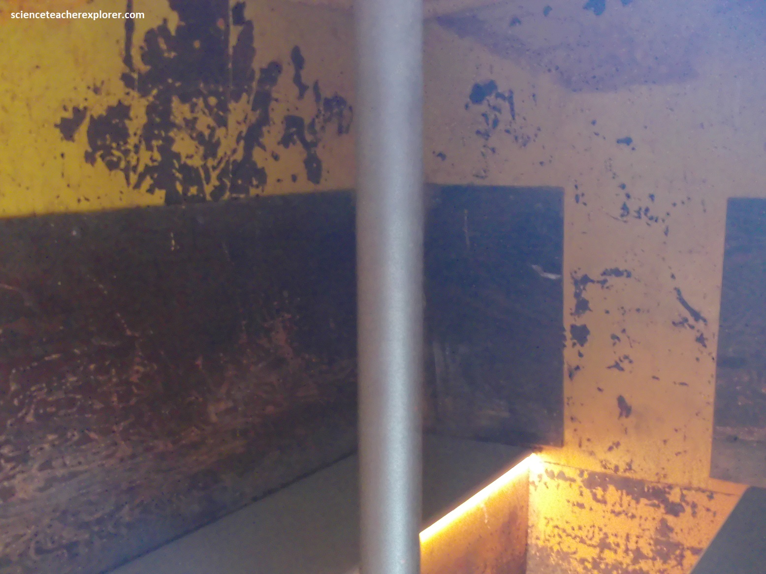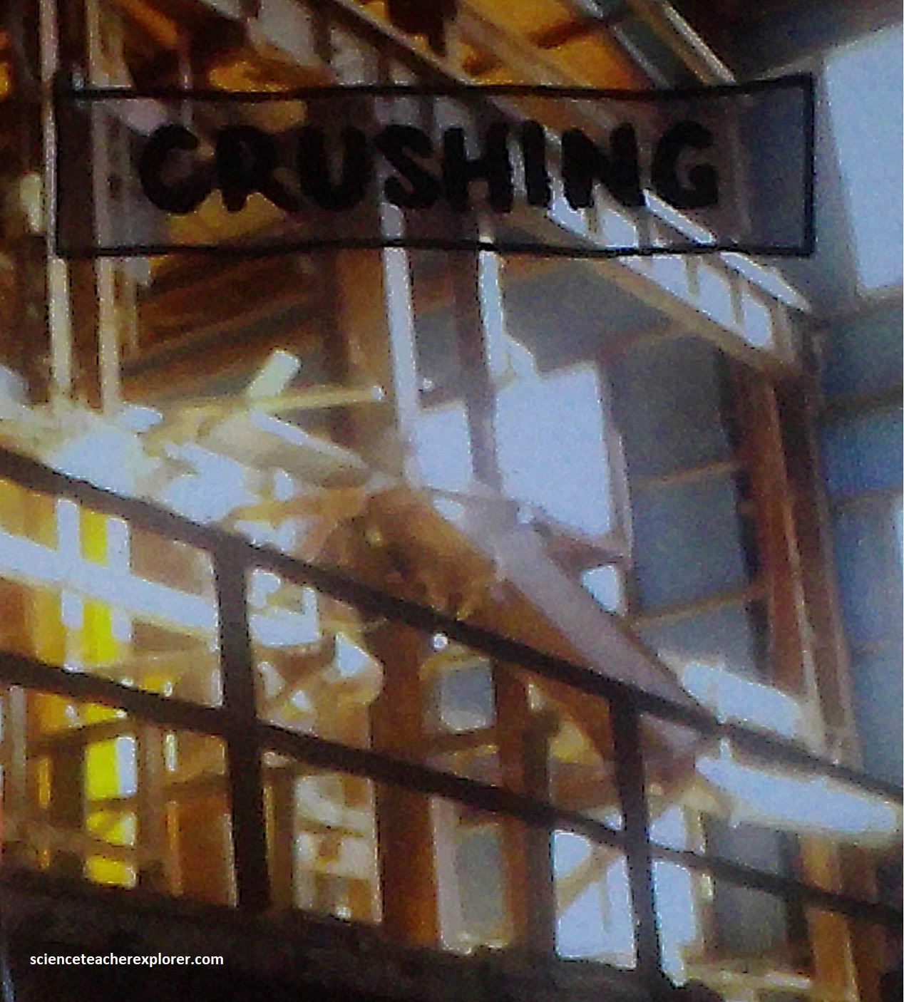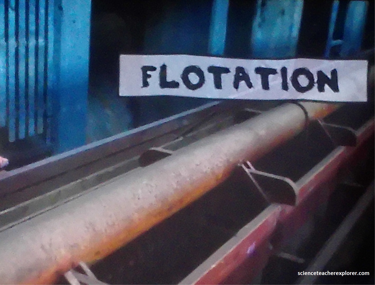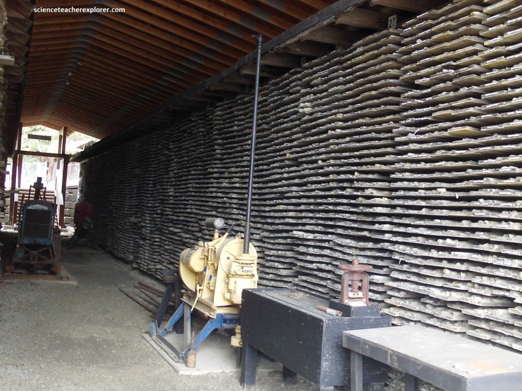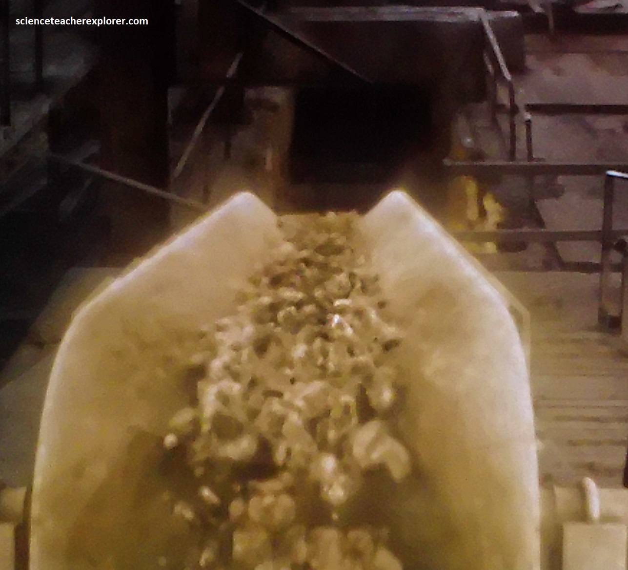 The ore then entered ball mills, (large, rotating drums filled with steel balls). These rocks are then pulverized and ground into a fine powder as thin as flour, {Images below were taken from an interpretive sign on-site}.