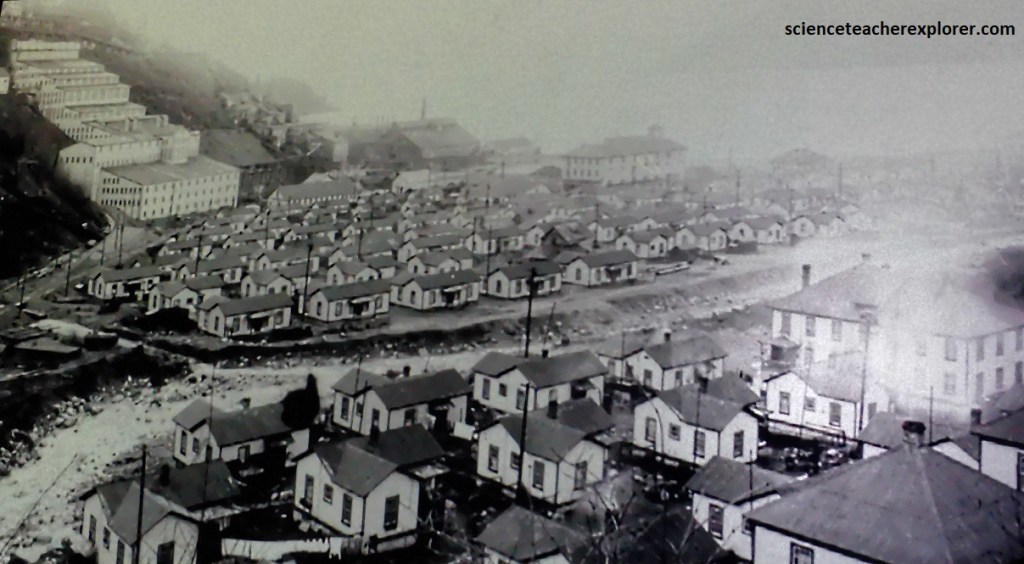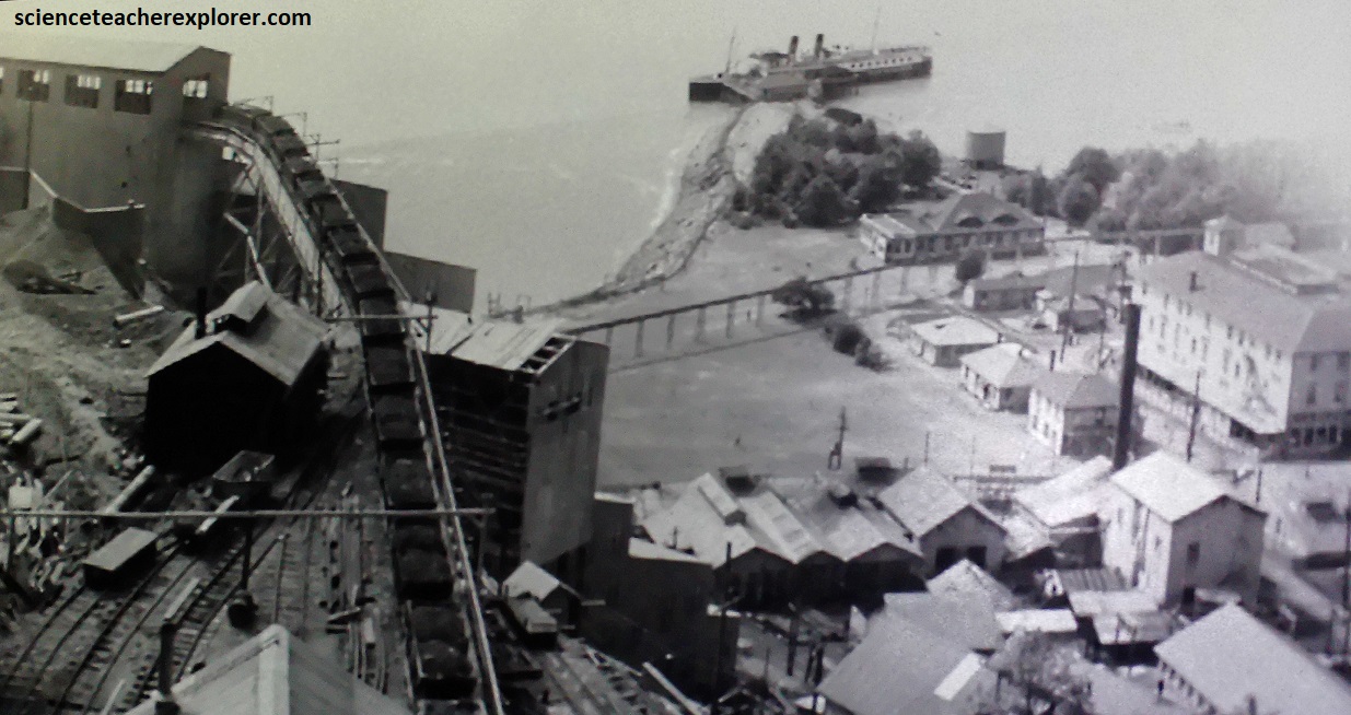 The “froth” of copper was skimmed off, dried into a concentrate (roughly 30-40% metal), and piped directly into the holds of ships at the dock below. At its peak in the late 1920s and early 1930s, the mine was a global powerhouse, providing roughly 17% of the world’s copper. Up to 7,000 tons of ore per day at its maximum capacity. {The historical photos below were taken from an interpretive sign on-site}.
