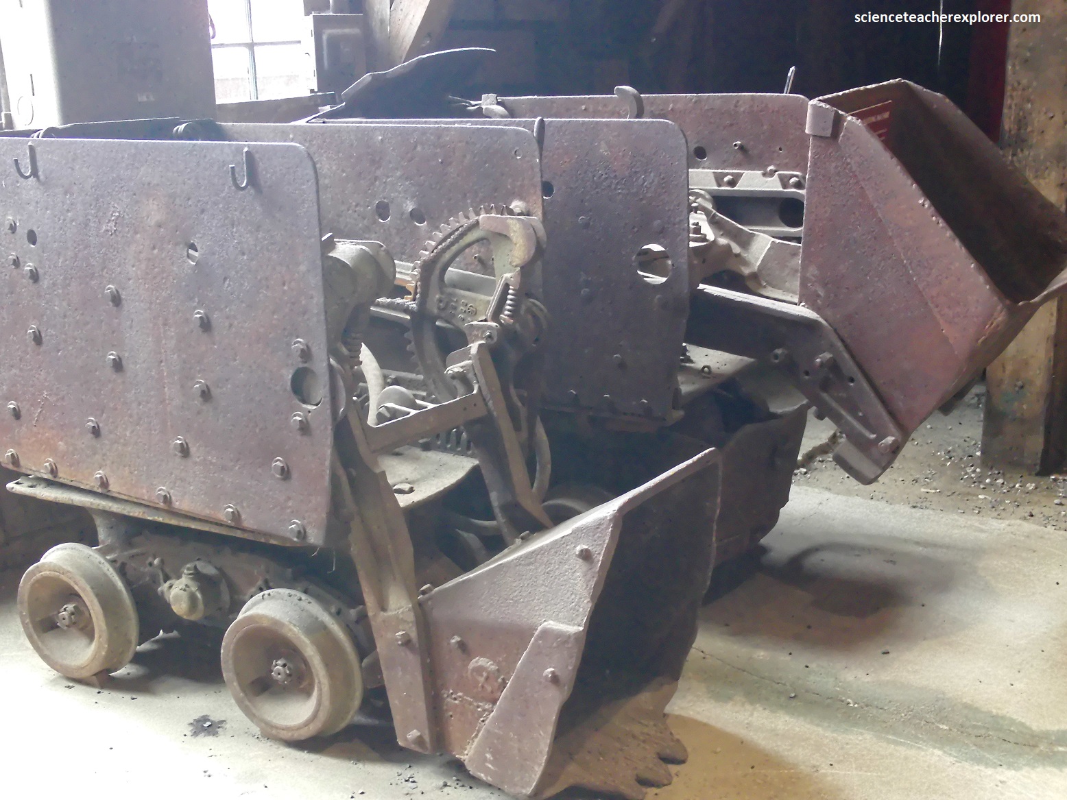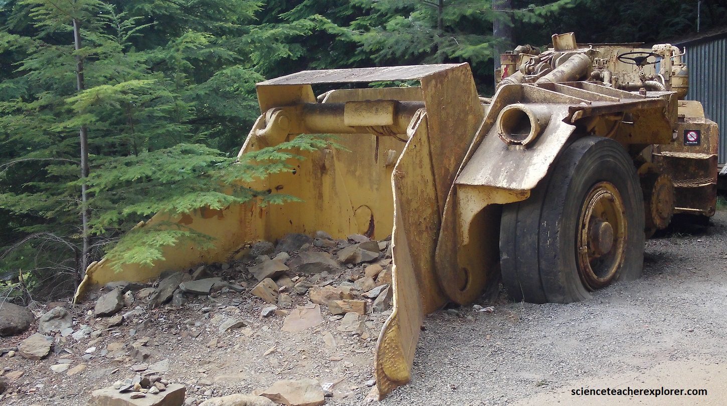 After rock was blasted free it was called muck. A variety of tools ranging from shovels to large diesel powered or car front-loaders moved the muck to conveyor belts, elevators, chutes and ore cars to move the rock to the surface where it would be taken to the Mill for processing. {Note the historical photo above was taken from an interpretive sign on-site}.