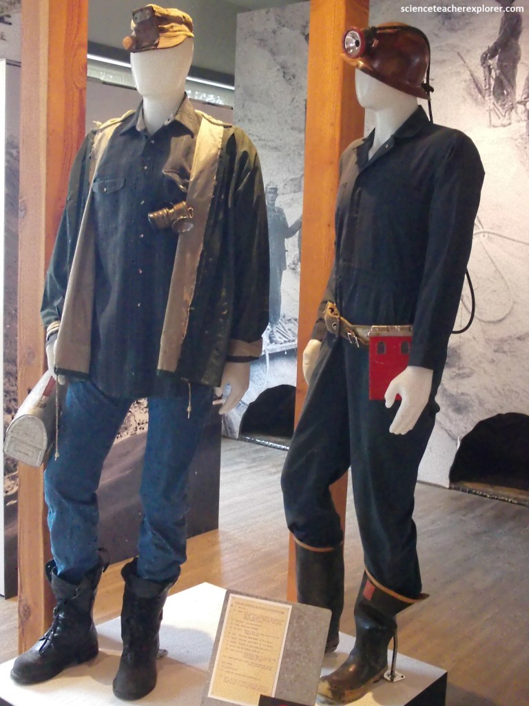 Historically, workers at the Britannia Mine wore sturdy, protective clothing suited for harsh conditions, often including heavy denim or canvas trousers, flannel shirts, boots, and rudimentary hard hats or cap lamps to navigate in the dark. Thick clothing was essential to protect against rock, debris, and chilly, damp conditions inside the mine. Early miners (1910s–20s) used carbide lamps attached to hats, which later evolved into battery-powered electric lamps, (pictured above).