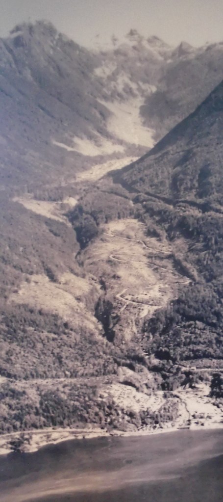 It should be noted, the first camps were log cabins and tents, but as the Mine grew, so did they. Some became home to both miners and their families. Being high in the mountains, winter was very different than at “The Beach”. The snow was deep and long-lasting. Those living on the northern slopes lived under the constant shadow of the mountains during the coldest months. And, life in the mountains had it’s own risks. Most notably, at midnight on March 22, 1915, a snow and rock slide crushed Jane Camp, claiming 56 men, women and children. This disaster was the worst to hit Britannia, and remains one of the worst natural disasters in Canadian History. Today, the camps are long since gone, but the remains of a bygone era linger on, high in the hills. {Note the historical photos below of Mount Sheer were taken from an interpretive sign on-site}.