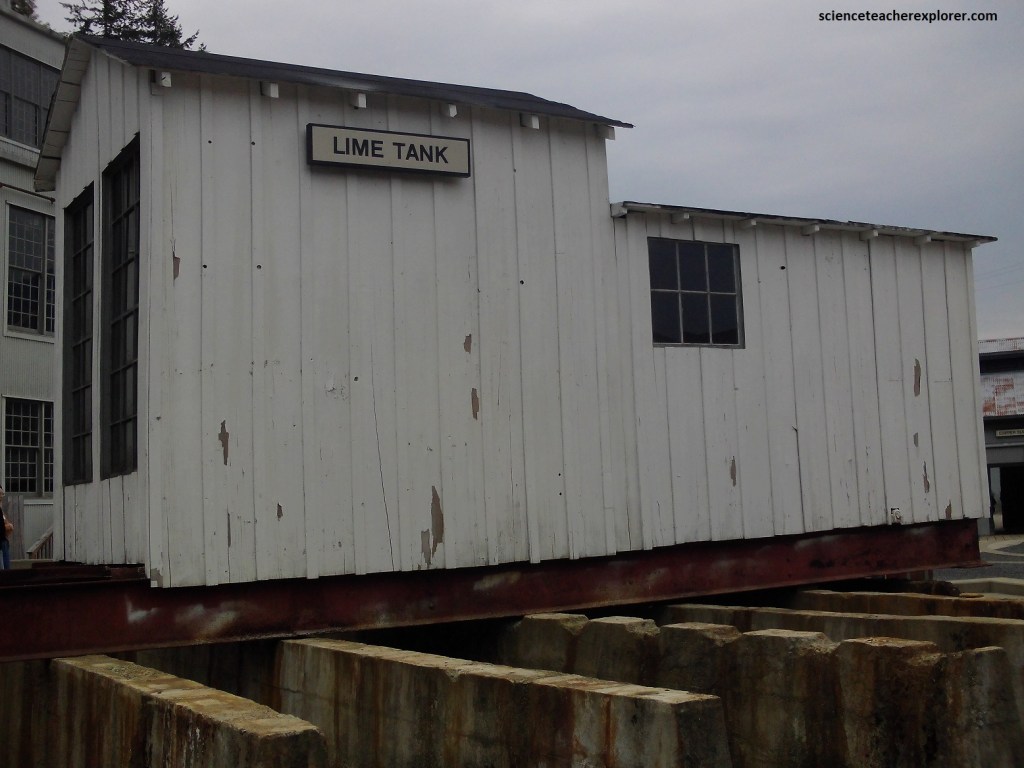 Three tanks once stood outside the Mill, another three inside. Pictured below is the house above the smallest of theses ‘Thickening Tanks’. Muddy water entered the tanks. It’s color come from the tiny grains of minerals it carried. Slowly the minerals settle to the bottom, separating the minerals from the water. This was an important step in preparing the ore for shipping. In later years of the Mine, this tank was used to store lime slurry, a chemical used in the Mill, and became known as the Lime Tank.