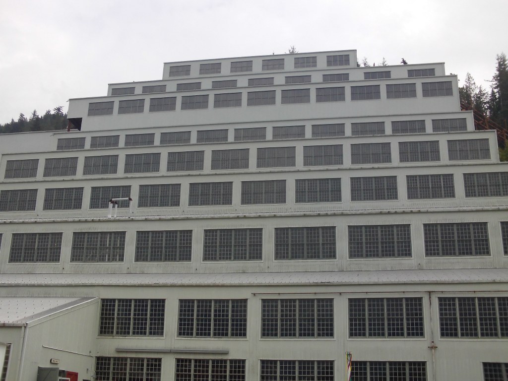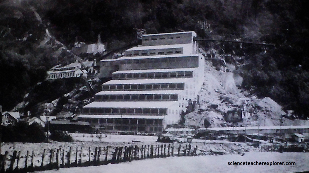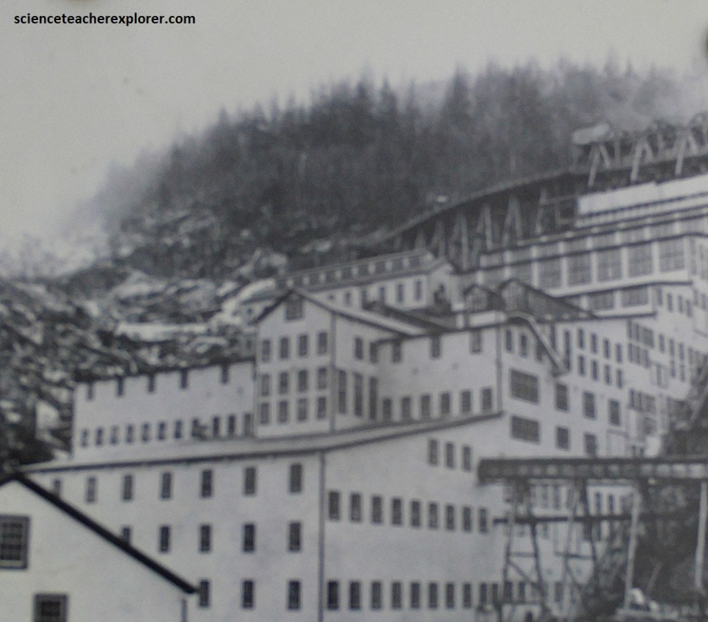 Pictured above, the monolithic concrete and steel structure to house it, No. 3 Concentrator, was completed in January 1923 on the northwest side of Mount Sheer. The No. 3 Concentrator operated until 1974, producing more than 500 million Kilograms of copper, 15 million grams of gold, 180 million grams of silver, 125 million kilograms of zinc, and lesser amounts of lead and cadmium.