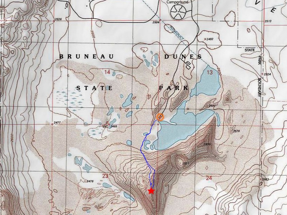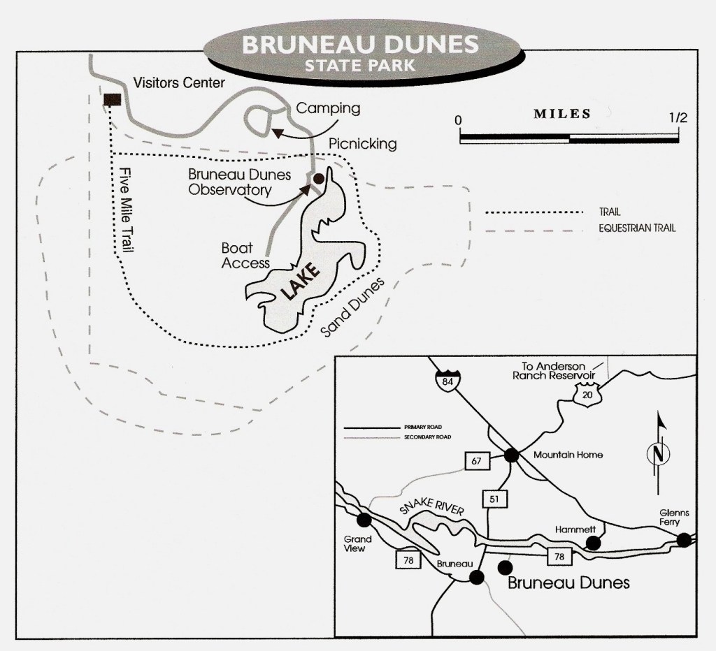 During the summer of 2021, I visited the Bruneau Dunes State Park. Bruneau Dunes State Park is located about 29 km south of Mountain Home. From the intersection of state road 51 and state road 78, just south of the Snake River, drive east on SR 78 for 2.7 km and turn south on the Bruneau Dunes State Park Road.