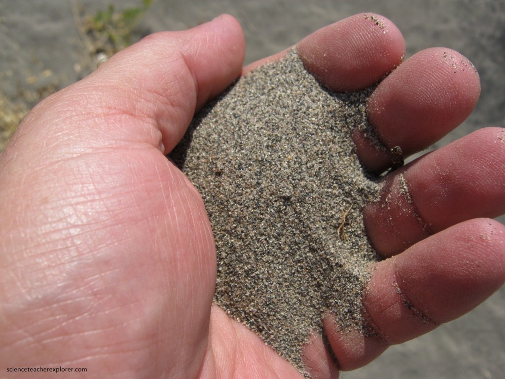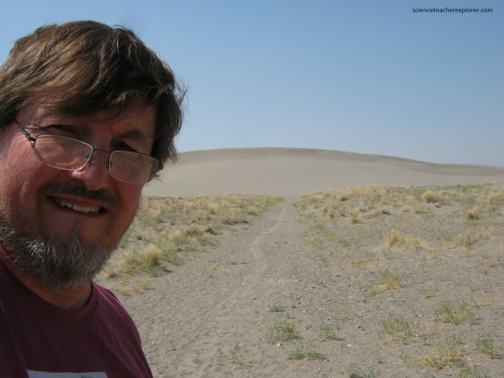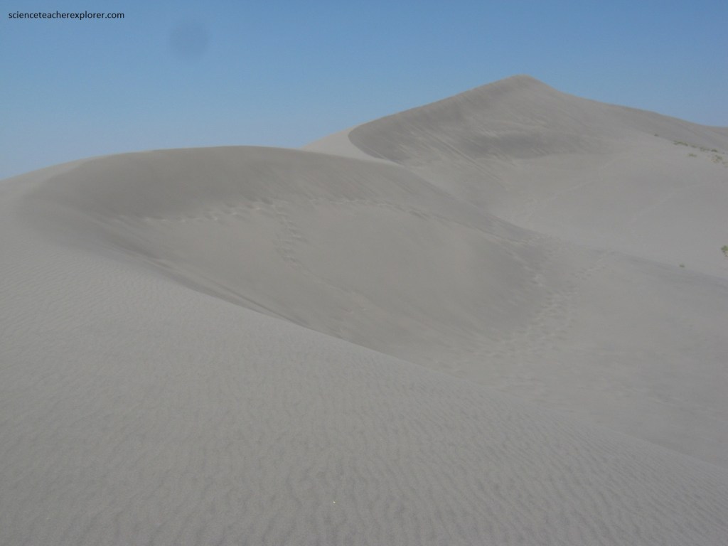 Another striking feature of the Bruneau Dunes is the composition of it’s sand. Most dunes are dominated by quartz, (a hard and common mineral). At Bruneau, the sand is much darker, and close inspection shows that it is a salt and pepper mixture of dark basalt grains and quartz.