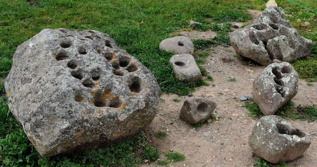 Pictured above, on the eastern side of the complex, a few stones seem to have holes drilled into them. The belief by some modern archeologists is that these stones were used as a type of agricultural calendar. The holes would be filled with water that would reflect the night sky. When certain astronomical objects, like the moon, or a planet, or a particularly bright star, matched a certain depression in the stone, it would be a sign of a change in seasons. Some of these stones are huge, with multiple depressions, as many as 20 or so, while others are small with only a couple of depressions.