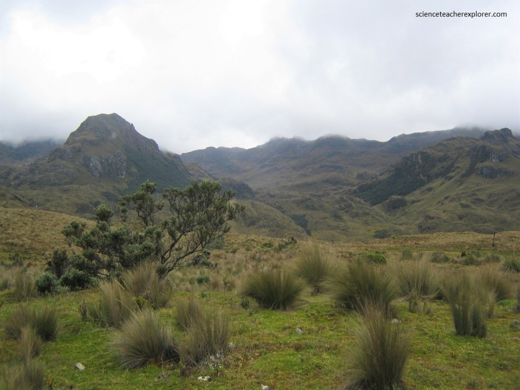 With temperatures ranging from -2 to 18° C and precipitation fluctuating between 1000-2000 mm per year, the area is very wet, which is why it serves as a drinking water supply area for the city of Cuenca. On the day we were there, it was very humid indeed, especially on the western side of the continental divide.