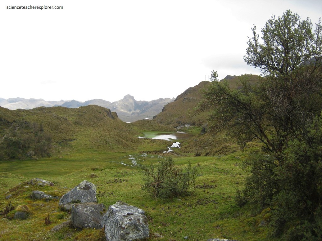 In Cajas National Park we found two striking ecosystems. The higher altitudes consisted of a tundra-like Andean Paramo, (rolling moors of grassland and low shrub). Lower down, cloud forest and perennial high mountain forest follows the ravines near streams.