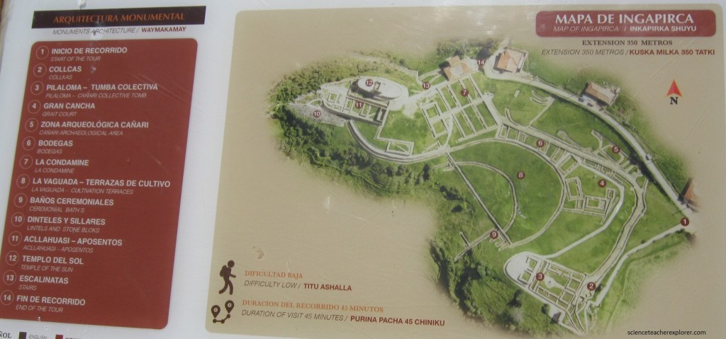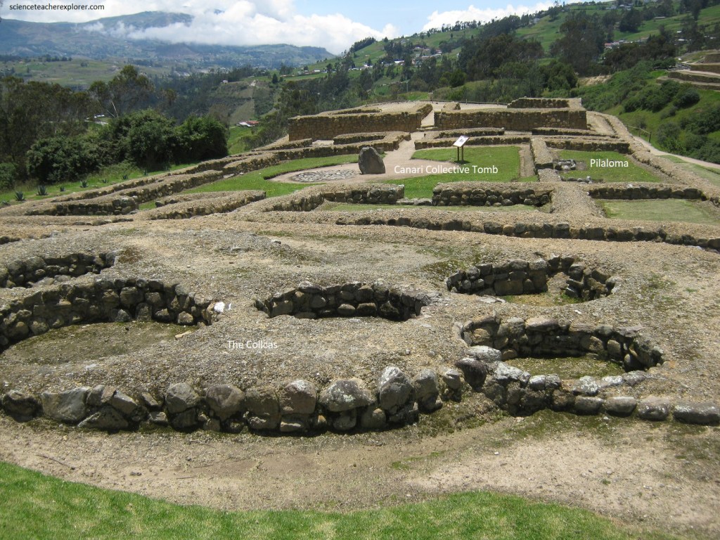 Pictured above, within a society with over production, these circular structures were made to store tubers and Andean grains like corn, quinoa, and amaranth. The “Pilaloma” is the oldest residential building in the complex, (1000 A.D.). Built on the foundations of the Canaris structures, the “Pilaloma” consists of eight rectangular rooms of Inca architecture and arranged around a large trapezoidal courtyard. It was a Canari social and ceremonial center, and then occupied by the Incas after their arrival.